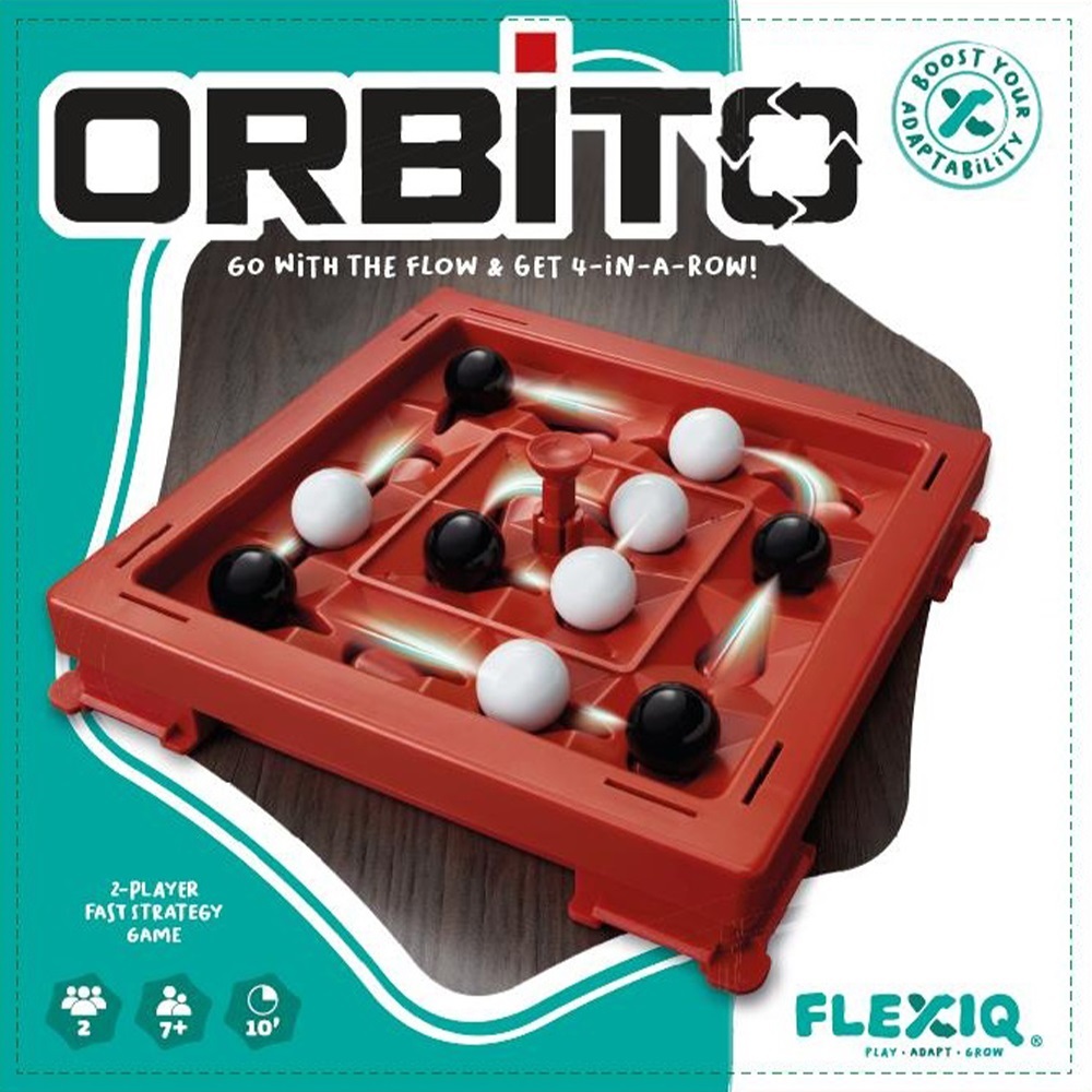 Επιτραπέζιο παιχνίδι στρατηγικής “Orbito” από τη συλλογή επιτραπέζιων της FlexiQ, που ενδυναμώνουν την αντίληψη, τον στρατηγικό τρόπο σκέψης, ενώ εστιάζουν στην ταχύτητα αντίδρασης των παιδιών. Το συγκεκριμένο επιτραπέζιο ενδυναμώνει τη λογική, την πολυπλοκότητα της σκέψης, την ικανότητα επίλυσης προβλημάτων, της πρόβλεψης και της μαθηματικής αντίληψης, ενώ ταυτόχρονα εξασκεί τη μνήμη και βελτιώνει τη συγκέντρωση. Στόχος του παιχνιδιού είναι να τοποθετήσουν οι παίκτες οριζόντια, κάθετα ή διαγώνια 4 μπίλιες του ιδίου χρώματος στο ταμπλό. Προσοχή όμως! Η σειρά κάθε παίκτη ολοκληρώνεται αφού πατήσει το κουμπί “Orbito” και όλες οι μπίλιες αλλάξουν μία θέση στην τροχιά τους. Με αυτό τον τρόπο κάθε παίκτης μπορεί να επηρεάσει τη στρατηγική των αντιπάλων του, μετακινώντας μία από τις μπίλιες τους, στο γύρο του. Αλλά προσοχή! Μπορούν και οι άλλοι να κάνουν το ίδιο! Ποιος θα καταφέρει να αναδειχθεί νικητής της παρτίδας; Κατάλληλο για ηλικίες 7 ετών και άνω. Αριθμός παικτών: 2 Διαστάσεις συσκευασίας 25 Χ 6 Χ 25 εκ.