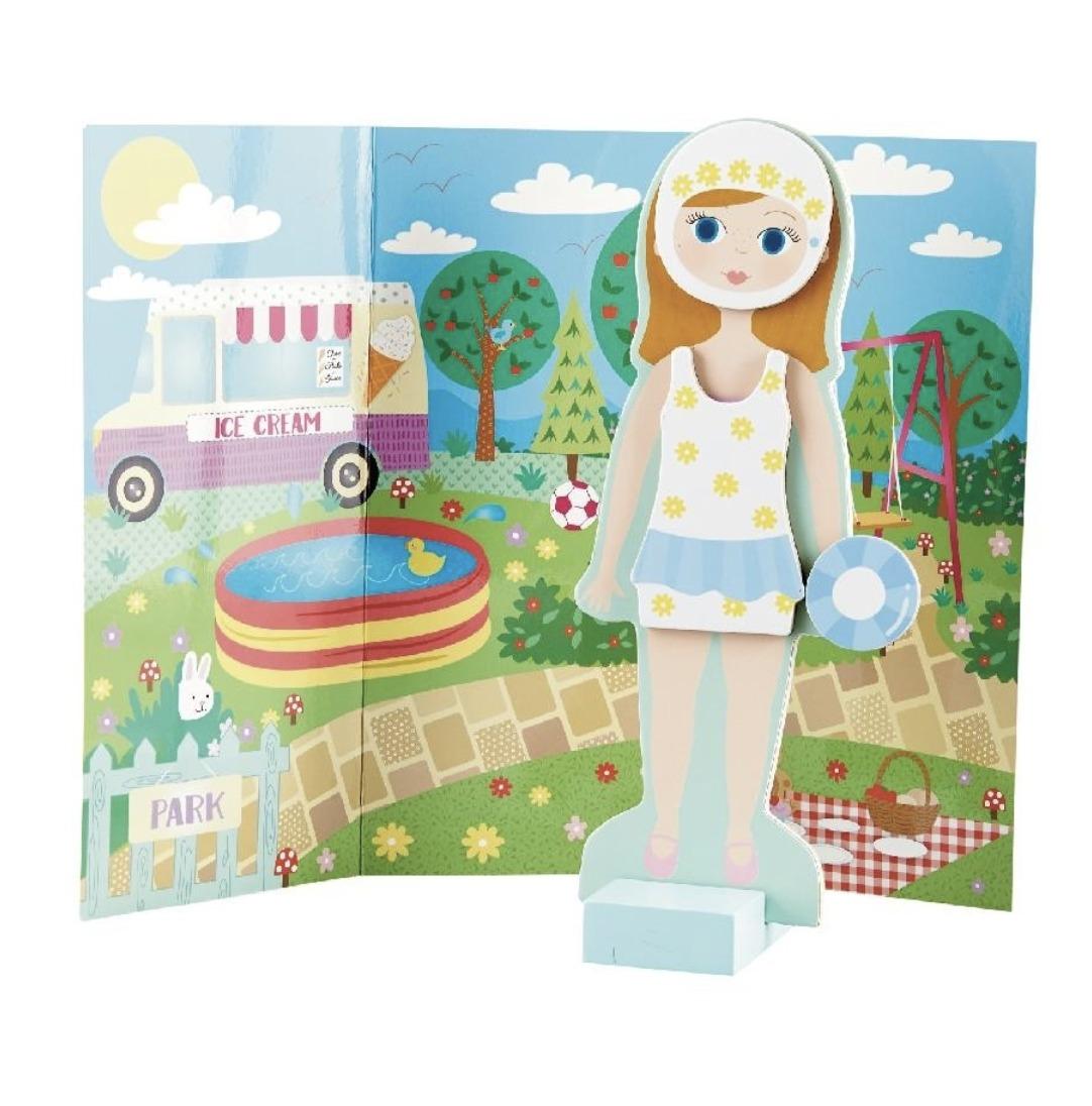 Ξύλινο μαγνητικό παζλ συνδυασμών με ρούχα από τη εταιρεία Floss and Rock. Ενώστε τα σωστά κομμάτια ανάλογα με την περίσταση και ντύστε την Elsie. Περιέχει 7 διαφορετικά σετ ρούχων και 2 παραστάσεις σε ένα υπέροχο αναδιπλούμενο κουτί με φόντο μια σκηνή υπνοδωματίου στη μία πλευρά και εξωτερικό χώρο στην πίσω πλευρά. Ένα ιδανικό παιχνίδι για εξάσκηση στη λύση προβλημάτων και ανάπτυξη της σκέψης και δεξιοτήτων του παιδιού. Το παιχνίδι αποτελείται από 37 ξύλινα μαγνητικά τεμάχια. Κατάλληλο για ηλικίες 3 ετών και άνω. Ύψος κούκλας: 23,5εκ. Διαστάσεις Συσκευασίας: 12 x 25 x 5.5 εκατοστά.