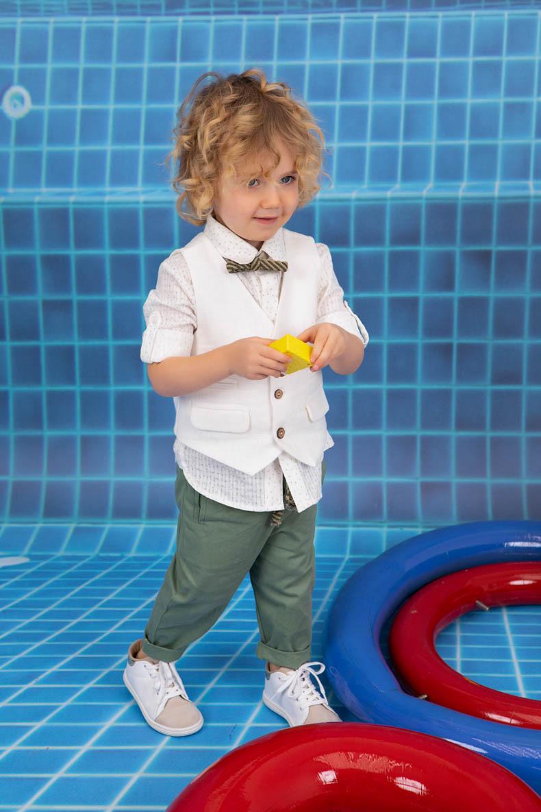 Ο Francis είναι ένα must have δυνατός χρωματικός συνδυασμός βάπτισης σε pal green με εκρού που θα σας μαγέψει. Αποτελείται από βαμ/ρο ιδιαίτερο παντελόνι με extra elegant κορδόνι, petit πουά cotton πουκαμίσα και εκρού loose fit γιλέκο. Αξεσουάρ το ιδιαίτερο παπιόν του και το ψάθινο καπελάκι για το κεφάλι
