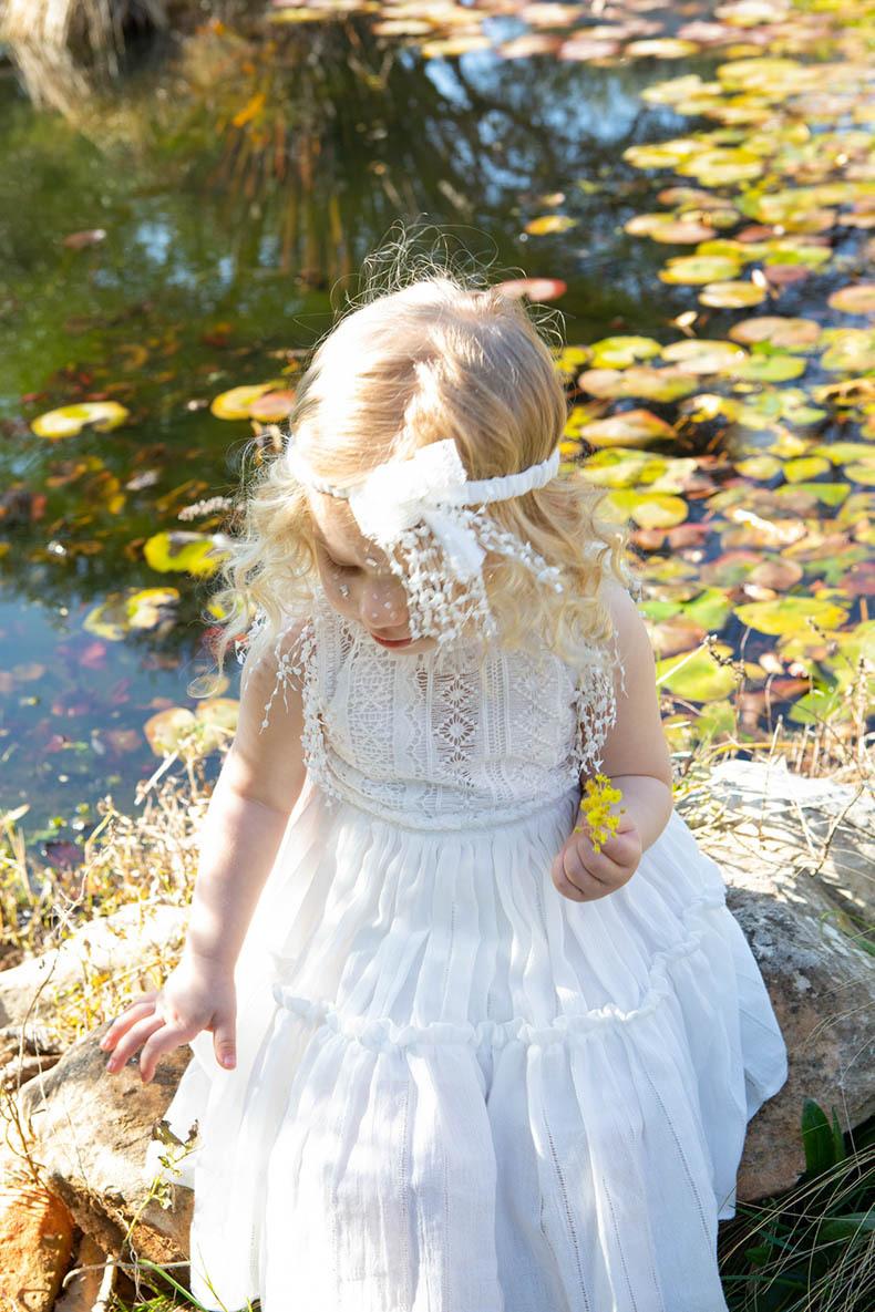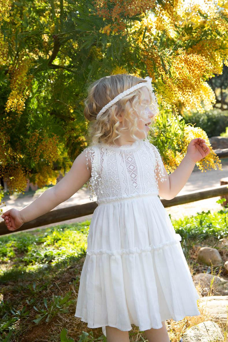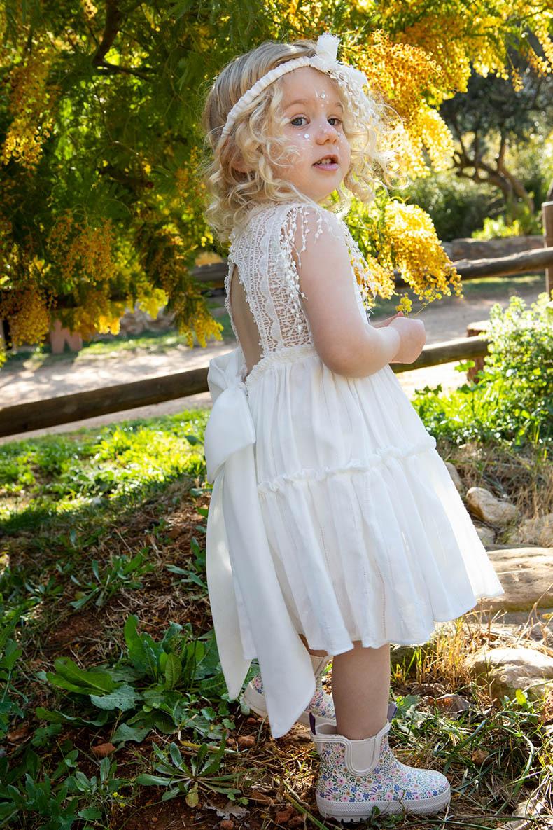 Η Gigi είναι ένα boho κομψό cotton φόρεμα σε ιβουάρ χρώμα. Είναι διακοσμημένο με δαντέλες και κρόσια, εσωτερικά είναι επενδυμένο με 100% βαμβακερό ύφασμα. Το αξεσουάρ για το κεφάλι είναι η κορδέλα με χειροποίητα εκρού δαντελένια λουλούδια.