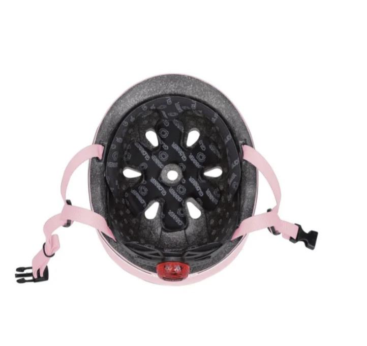 Παιδικό κράνος προστασίας Globber με αναλάμπον LED ασφαλείας, για πατίνι, ποδήλατο ή σκουτερ. Ρυθμίστε εύκολα την εφαρμογή από το κουμπί δακτυλίου. Κέλυφος από ενιαίο καλούπι για απόλυτα ανθεκτική δομή. Μαξιλαράκια αφρού 7mm για μέγιστη άνεση και ασφάλεια.
