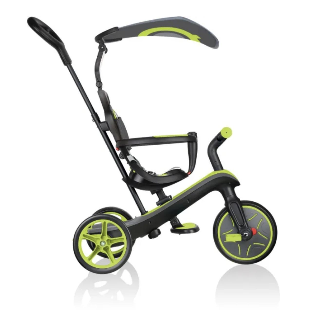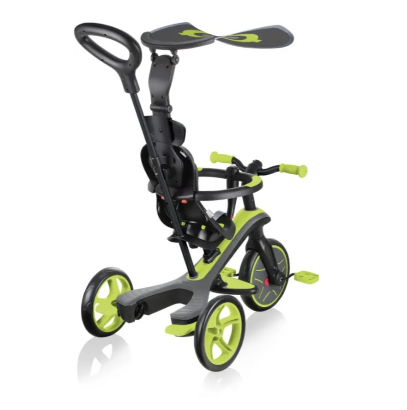 Globber Τρίκυκλο Trike Explorer 4in1-Teal (632-105).Τι προσφέρει το EXPLORER TRIKE σε σχέση με ένα απλό τρίκυκλο; Πρόκειται για ένα τρίκυκλο και ποδήλατο ισορροπίας (όλα σε ένα) που αλλάζει χρήση χωρίς εργαλεία και βίδες! Χρησιμοποιώντας τον πατενταρισμένο μηχανισμό αλλαγής χρήσης χωρίς εργαλεία και εύκολης αποθήκευσης οι γονείς μπορούν να αλλάζουν χρήση, καθώς τα παιδιά μεγαλώνουν με τον πιο εύκολο και πρακτικό τρόπο.Έχουν 2 πίσω φρένα για ασφαλή ακινησία του τρίκυκλου καθώς και υποπόδιο ώστε τα παιδιά να μπορούν να ξεκουράσουν με ασφάλεια τα πόδια τους, ενώ το προϊόν βρίσκεται σε κίνηση.Περιλαμβάνει την ζώνη 5 σημείων και τη μπάρα ασφαλείας, για επιπρόσθετη ασφάλεια του μικρού παιδιού.Χαρακτηριστικά: