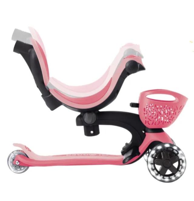 Μπροστινοί τροχοί με λευκά LED φωτάκια (χωρίς μπαταρίες) από υλικό PU για ομαλή και ξεκούραστη κύλιση. Διάμετρος τροχών 121mm.