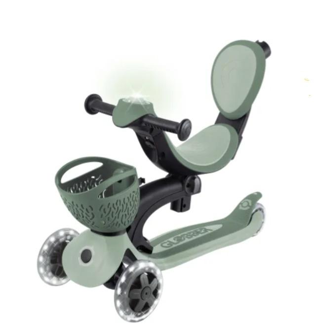 Μπροστινοί τροχοί με λευκά LED φωτάκια (χωρίς μπαταρίες) από υλικό PU για ομαλή και ξεκούραστη κύλιση. Διάμετρος τροχών 121mm