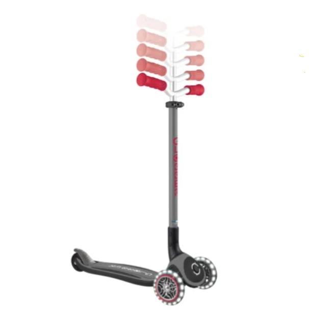 Σούπερ φαρδιά και κυρτό τιμόνι Τ-Bar αλουμινίου ρυθμιζόμενο σε 5 ύψη (74cm, 79cm, 84cm, 89cm και 94cm από το έδαφος) με άνετες εργονομικές λαβές TPR διπλού χρώματος για άνετες βόλτες