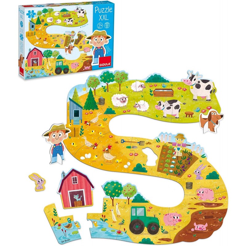 Μεγάλο ελικοειδές παζλ από την εταιρία Goula. Περιέχει 17 κομμάτια και δύο φιγούρες για να παίξετε με εικόνες αγροκτήματος. Το παζλ σχηματίζει μια πολύ ενδιαφέρουσα διαδρομή σε σχήμα S με υπέροχες εικόνες που θα συναντήσεις σε μια φάρμα.