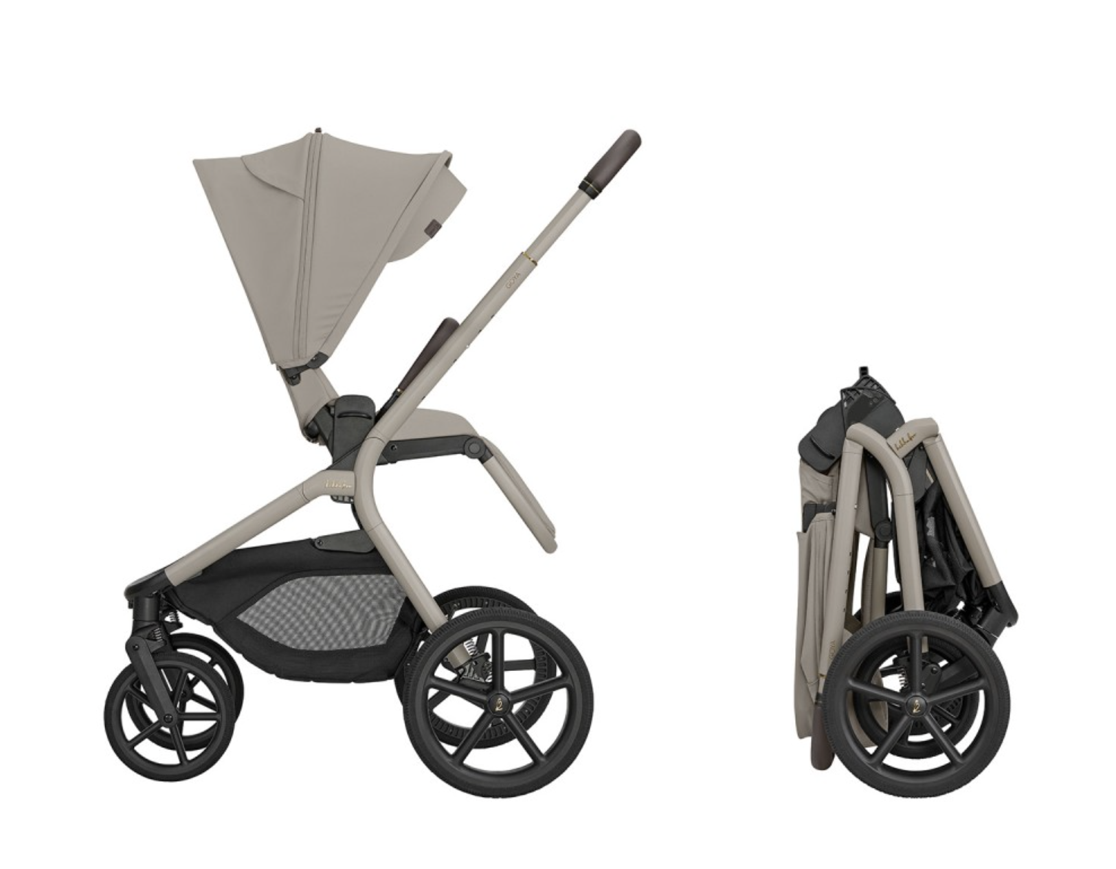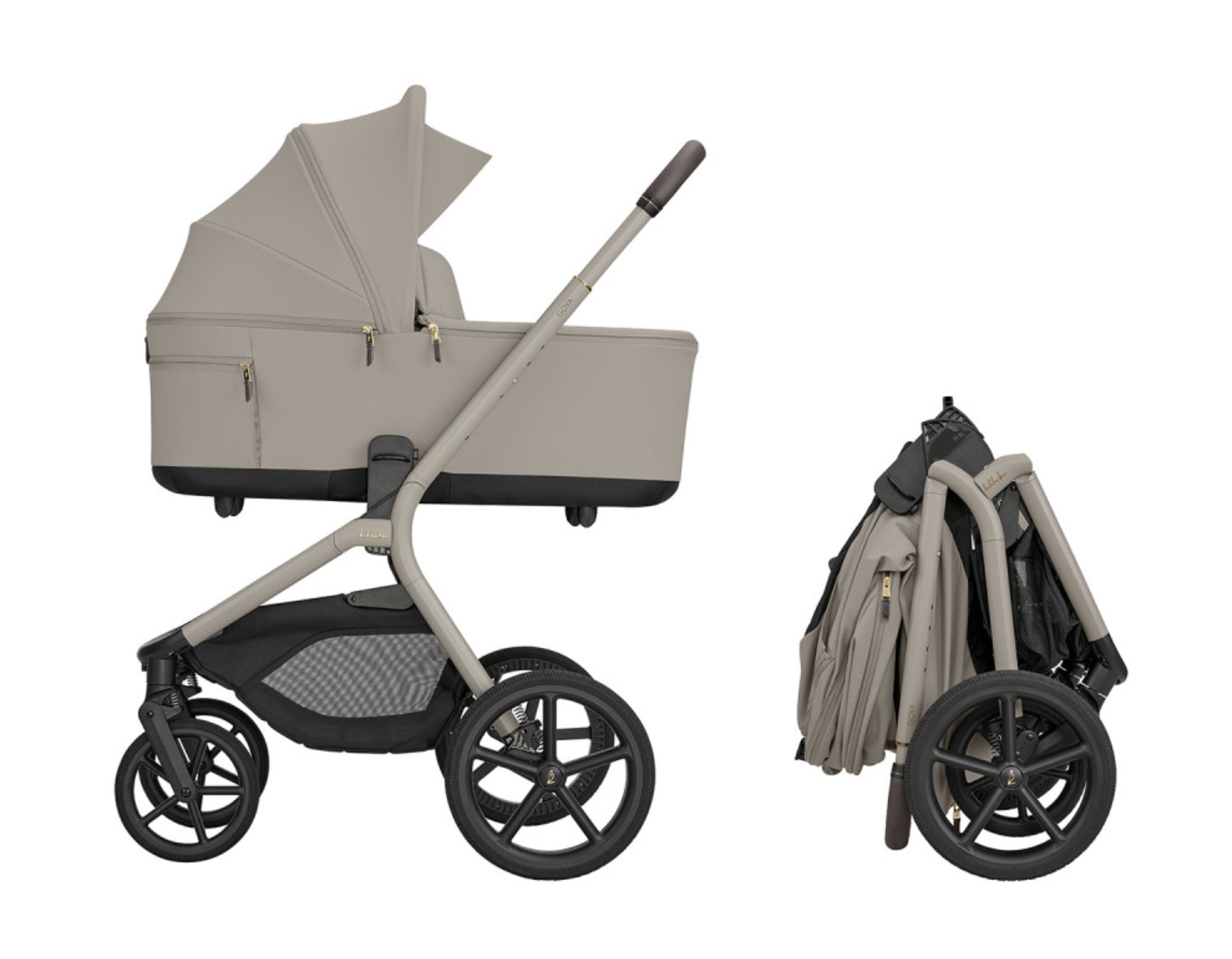 Η απαράμιλλη πρακτικότητα με το αναδιπλούμενο σκελετό MAZI με το πορτ μπεμπε, την καινοτόμα ρύθμιση σε ύψος του καροτσιού και τον ιμάντα μεταφοράς ώμου δημιουργούν μια νέα, ξεκούραστη και εύκολη μεταφορά του καροτσιού από τον γονέα