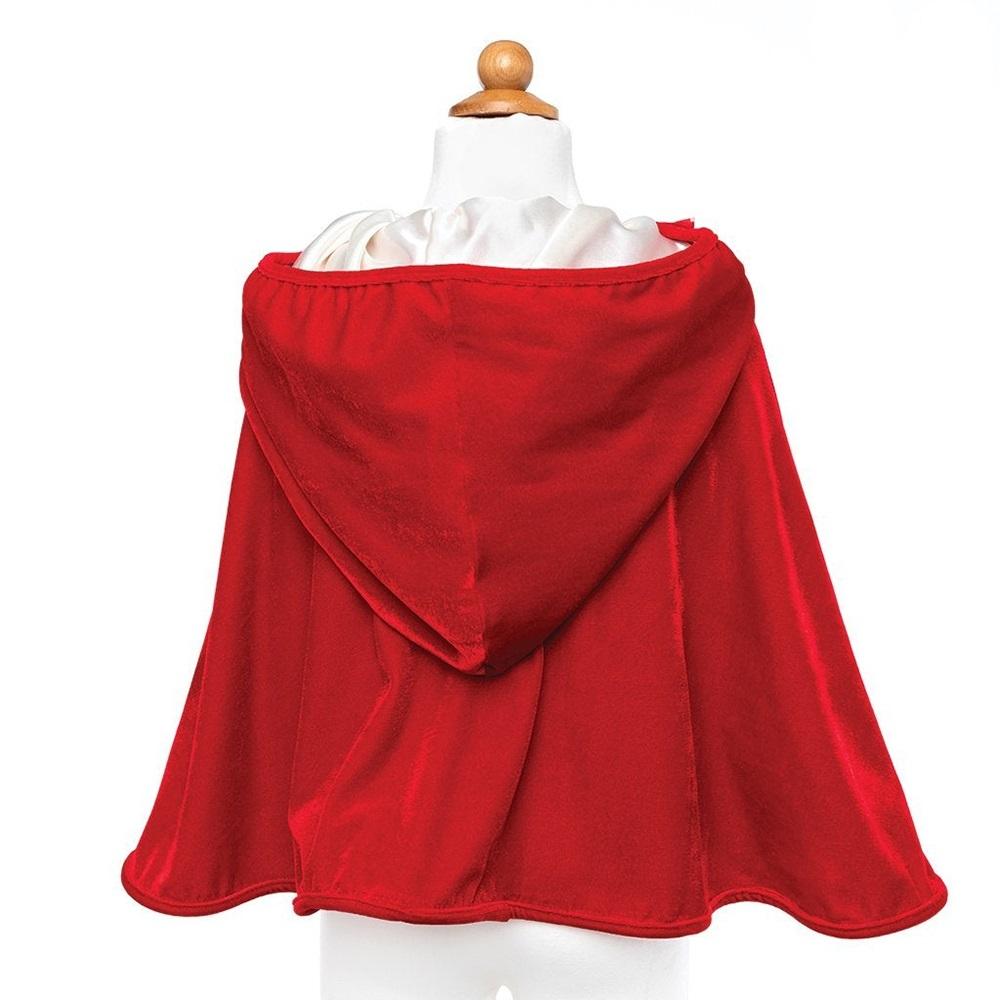 Η εταιρεία Great Pretenders, με την γνωστή ποιότητα των υλικών που χρησιμοποιεί, σχεδιάζει μία κάπα για την απόλυτη μεταμόρφωση των μικρών μας φίλων σε Κοκκινοσκουφίτσες! Είναι κατασκευασμένη από κατακόκκινο βελούδο δύο όψεων, ενώ λευκό σατέν ύφασμα καλύπτει το εσωτερικό της κουκούλας. Δένει στον λαιμό με φιόγκο από πλούσιο επίσης σατέν, κόκκινο ύφασμα, ο οποίος αφαιρείται ώστε να μπορεί άφοβα η κάπα να πλυθεί με κρύο νερό. Πρότυπο μέγεθος παιδιού για την ηλικία 4 έως 6 ετών. Ύψος :104-116 εκατοστά. Μέση :64-66 εκατοστά. Γοφοί :56-57 εκατοστά.