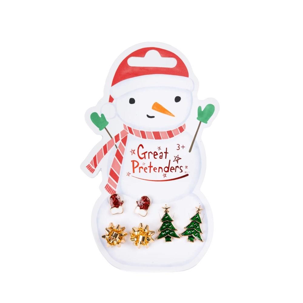 Υπέροχο σετ σκουλαρικιών με Χριστουγεννιάτικα σχέδια από την εταιρεία Great Pretenders. Τρία πανέμορφα σχέδια για μοναδικές εμφανίσεις που θα γίνουν τα αγαπημένα αξεσουάρ των παιδιών, προσδίδοντας μια ιδιαίτερη νότα σε κάθε εμφάνισή τους. Κατάλληλα για ηλικίες άνω των 3 ετών.