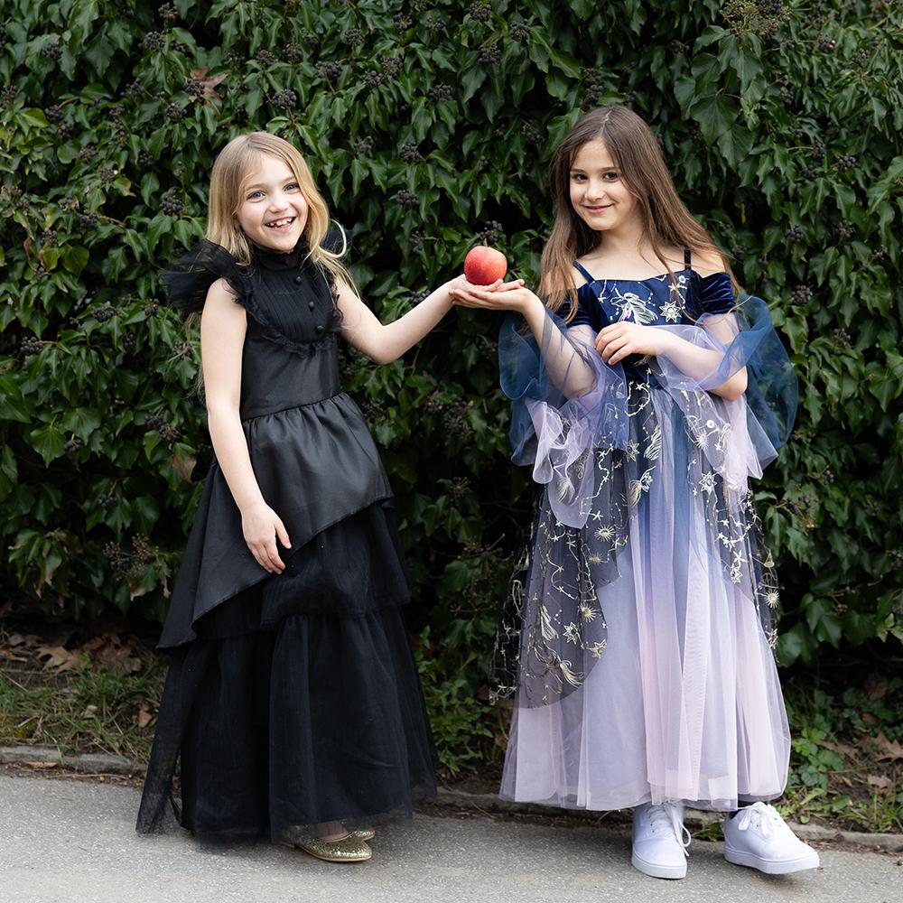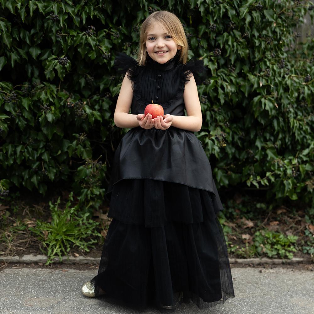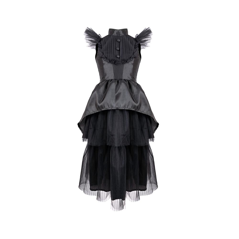Αναδείξτε το μυστηριώδες στιλ του μικρού σας με αυτό το εντυπωσιακό φόρεμα της Great Pretenders. Σε μαύρη απόχρωση, συνδυάζει στοιχεία θεατρικότητας και κομψότητας, ιδανικό για μικρές μάγισσες που θέλουν να ξεχωρίζουν. Το επάνω μέρος του διαθέτει διακοσμητικά κουμπιά και ιδιαίτερες λεπτομέρειες από τούλι στους ώμους, προσθέτοντας δραματικό ύφος και γοητεία. Η φούστα εντυπωσιάζει με το ασύμμετρο κόψιμο και τα πολυεπίπεδα στρώματα τούλι, δημιουργώντας πλούσιο όγκο και αέρινη κίνηση σε κάθε βήμα. Ιδανικό για αποκριάτικες εμφανίσεις, Halloween parties, θεατρικές παραστάσεις ή για παιχνίδι ρόλων.