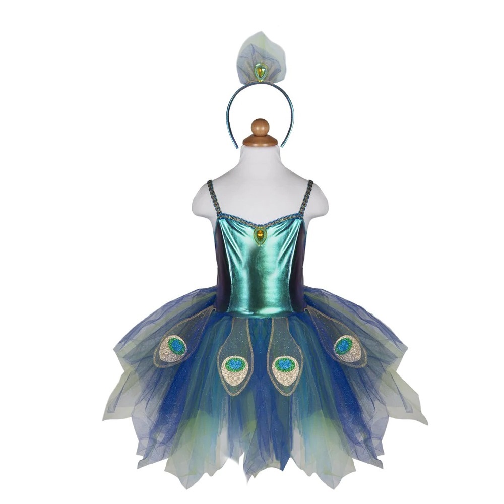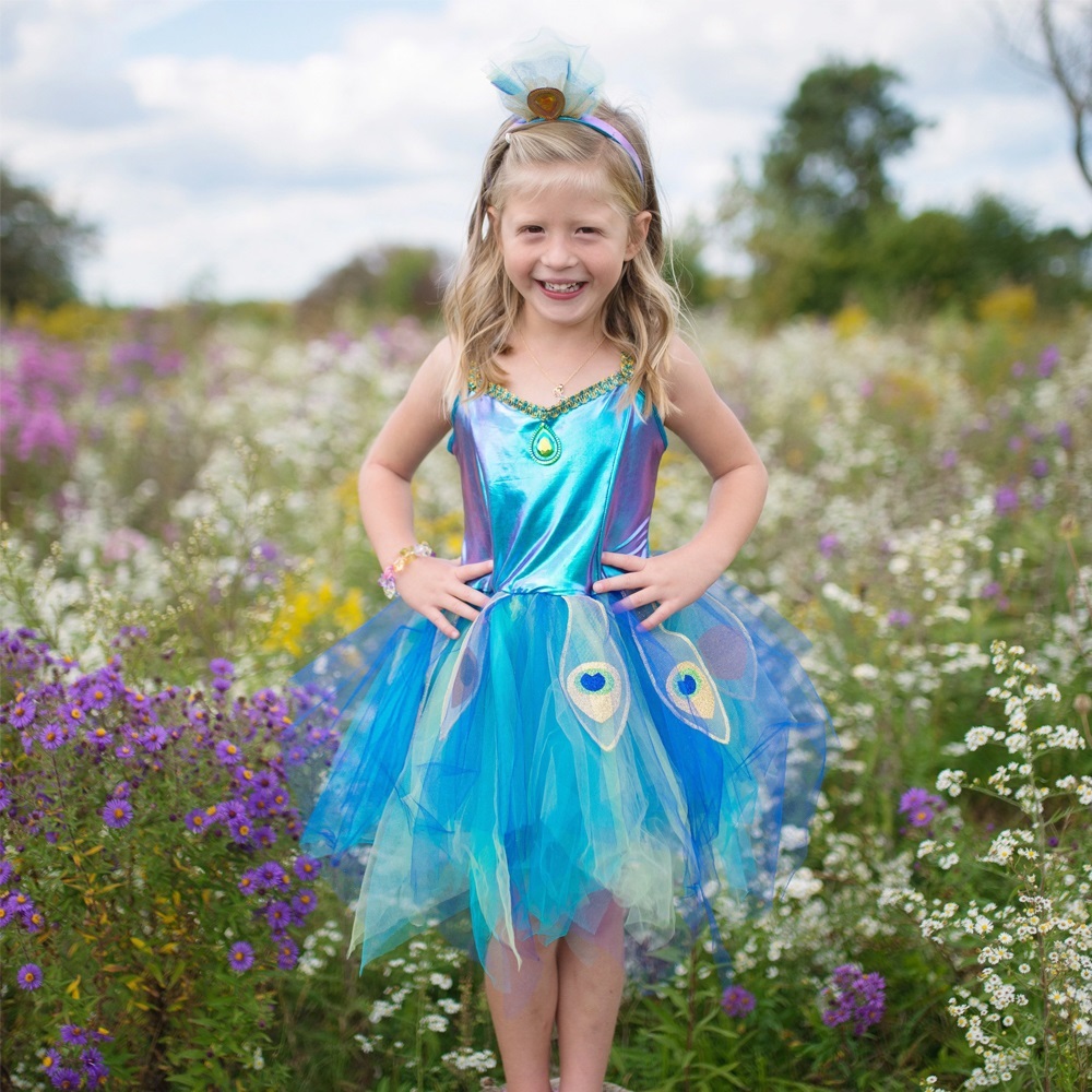 Πανέμορφη στολή παγώνι με στέκα της εταιρίας Great Pretenders. Η στολή είναι εξαιρετικής ποιότητας, αποτελείται από υφάσματα διαφόρων υφών, όπως τούλι, μεταλλιζέ και χρυσόσκονες, που προσδίδουν ένα εντυπωσιακό αποτέλεσμα και συνοδεύεται από μια τρισδιάστατη στέκα με που συμπληρώνει όμορφα τη στολή. Είναι κατάλληλη για τις απόκριες, αλλά και για συμβολικό παιχνίδι για όλη τη διάρκεια του χρόνου. Μέσα από το συμβολικό παιχνίδι και τα παιχνίδια ρόλων τα παιδιά μαθαίνουν να εκφράζονται, αναπτύσσουν το λόγο τους και απελευθερώνουν τη φαντασία τους! Κατάλληλη για ηλικίες 5-6 ετών.