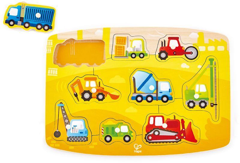 Hape Happy Puzzles Ξύλινο Παζλ Οχήματα Construction Peg