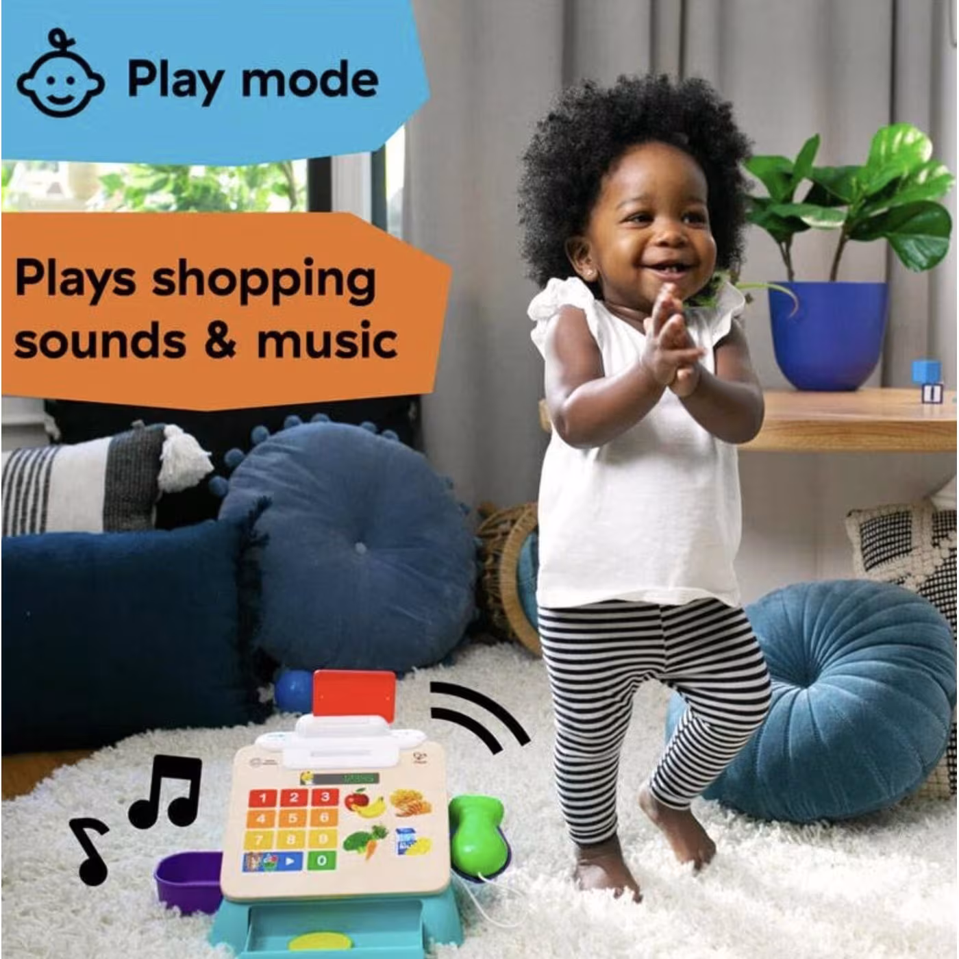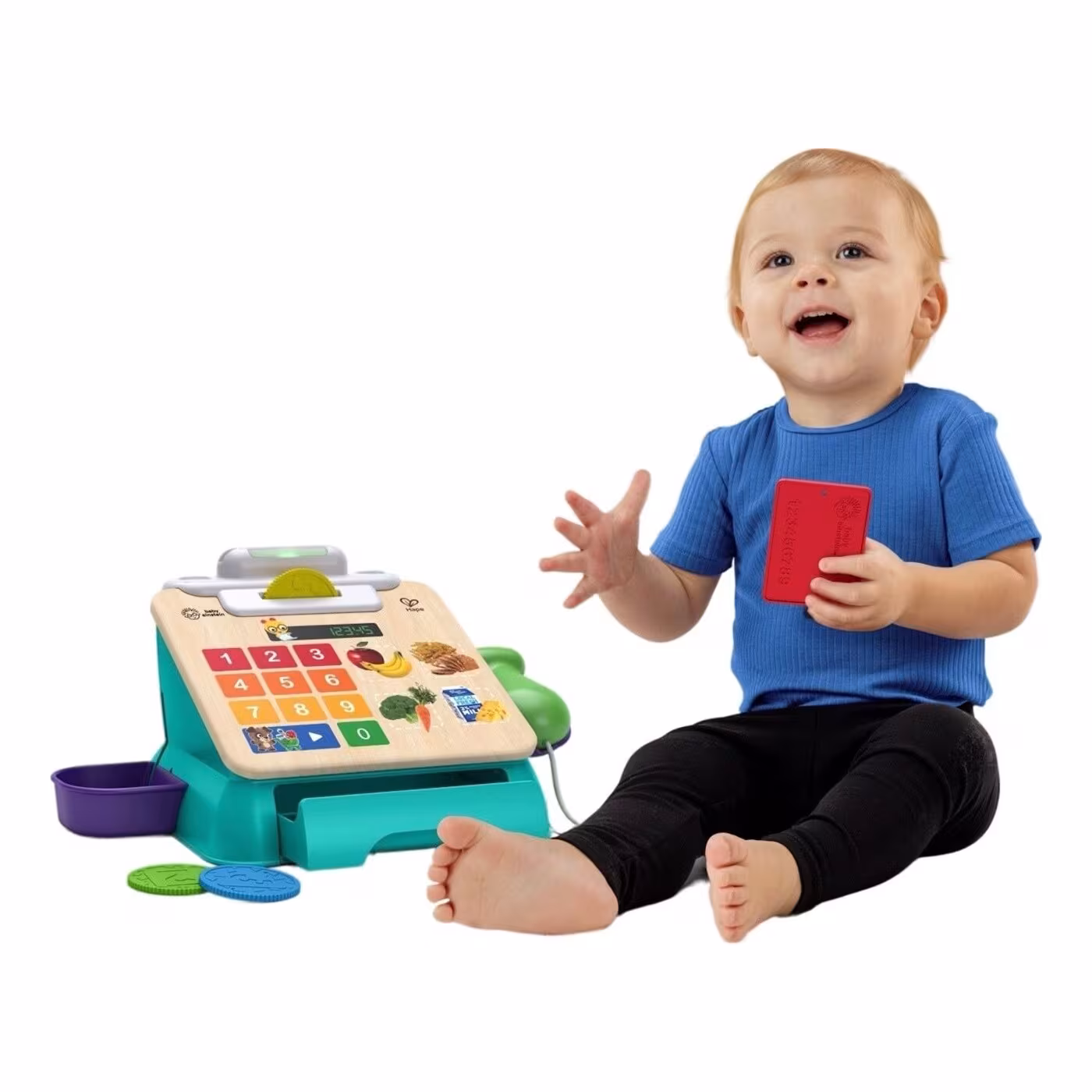 Ο σαρωτής «κουδουνίζει» ένα τρόφιμο για check out με φράσεις, μελωδίες, ήχους και φώτα. 16 εξαιρετικά υψηλής απόκρισης κουμπιά Magic Touch ανταποκρίνονται στο παραμικρό άγγιγμα του μωρού. Κλινγκ κλινγκ! Τοποθετήστε τα 3 νομίσματα για να πληρώσετε με μετρητά. Χρέωσε το στην κάρτα μου! Σύρετε την κάρτα για να πληρώσετε μέσω πίστωσης. Το συρτάρι μετρητών ανοίγει και κλείνει για να αποθηκεύσετε τα νομίσματα και την κάρτα. Η λειτουργία εξάπτει τη περιέργεια του μωρού με ηχητικά εφέ και μελωδίες, εισάγοντας τα πρώιμα θέματα αγορών.