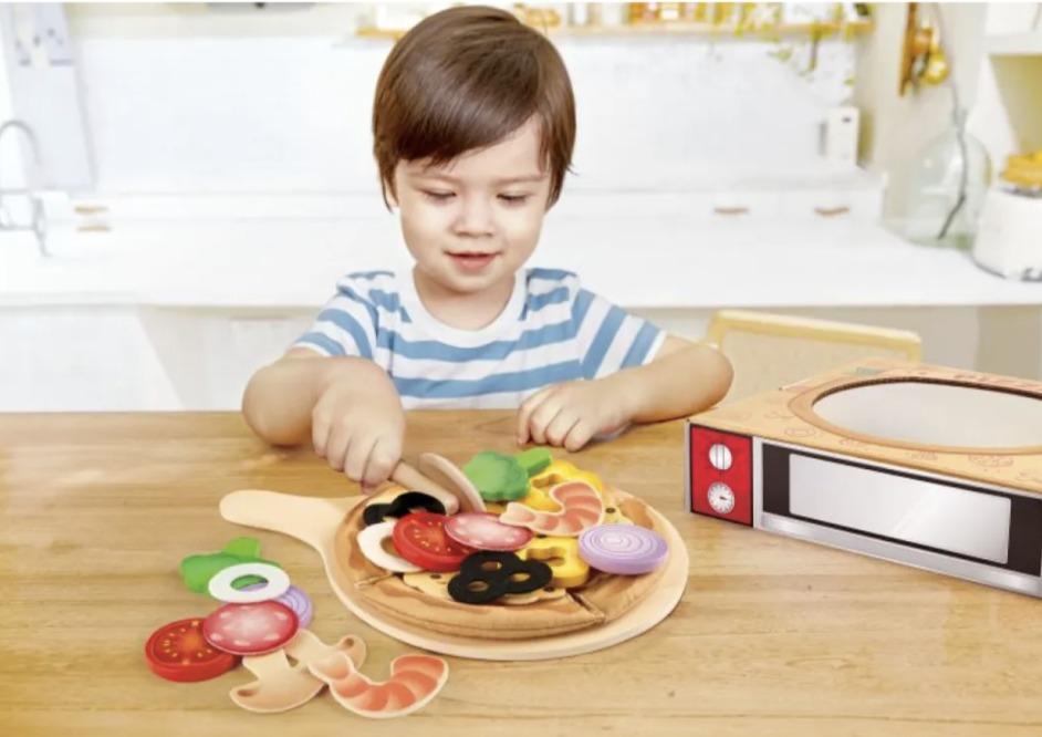 Πάρτε μια γεύση ιταλικής κουζίνας με αυτό το εκπληκτικό παιχνίδι πίτσας! Περιλαμβάνει μια βάση για πίτσα που μπορεί να κοπεί σε φέτες, ένα κομμάτι πίτσας, ένα κόφτη, πολλά κομμάτια θαλασσινών, λαχανικών και άλλων υλικών πίτσας καθώς επίσης και το κουτί παράδοσης που γίνεται φουρνάκι.
