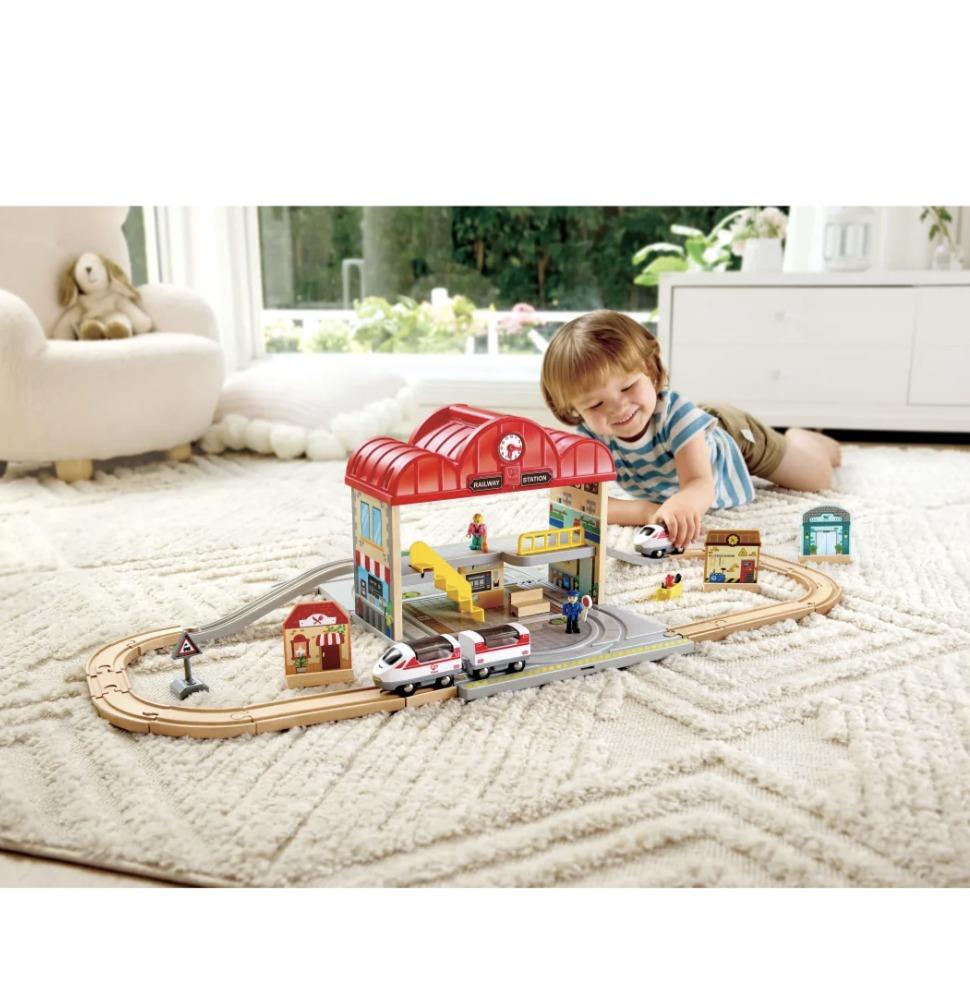 Hape Railway Ξύλινος Σιδηρόδρομος Train Station Set E3877K