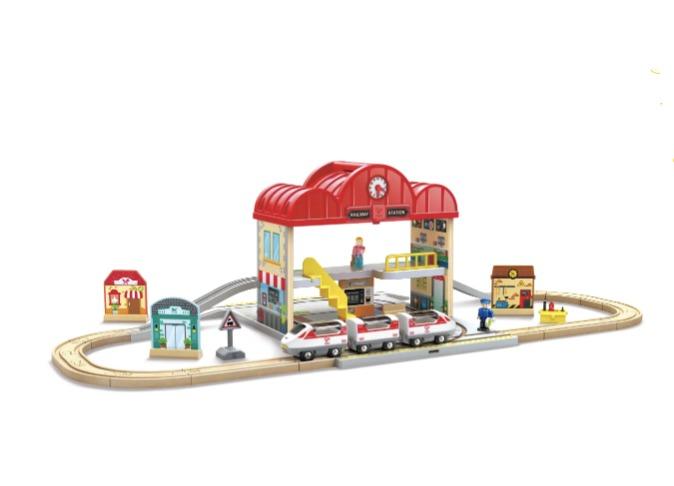 Hape Railway Ξύλινος Σιδηρόδρομος Train Station Set E3877K - Image 2