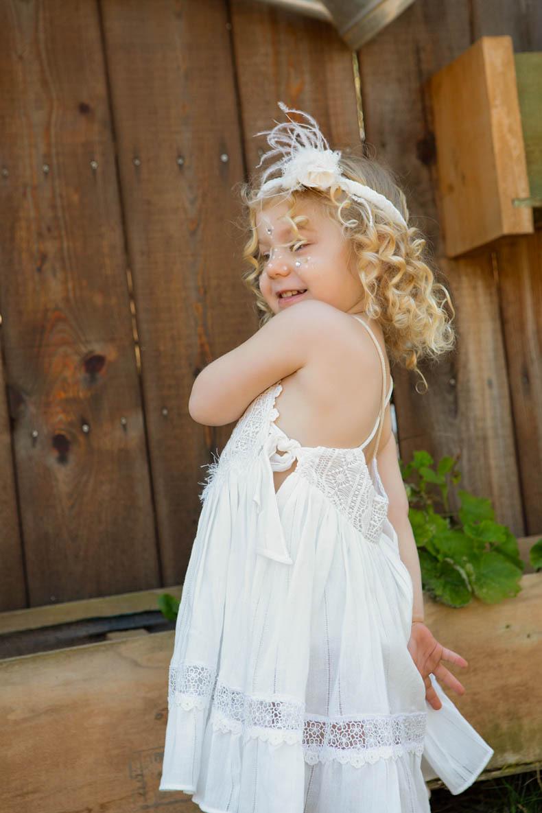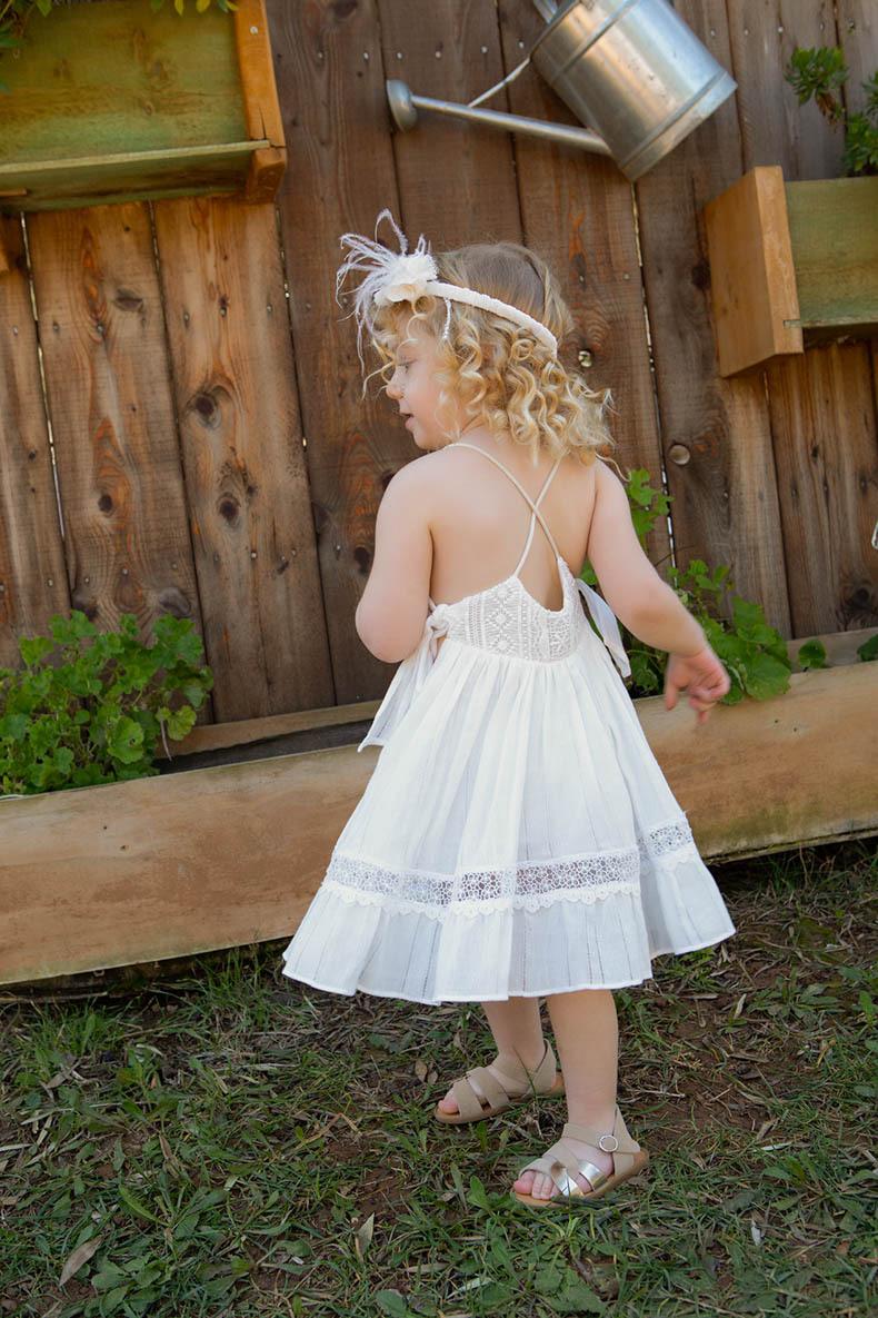 Η Hilary είναι ένα boho chic σε ιβουάρ χρώμα φόρεμα από βαμβάκι και γάζα εξαιρετικής ποιότητας. Διακοσμείται με δαντέλες και exclusive φτερά. Το ρούχο συμπληρώνεται με handmade κορδέλα για το κεφάλι.