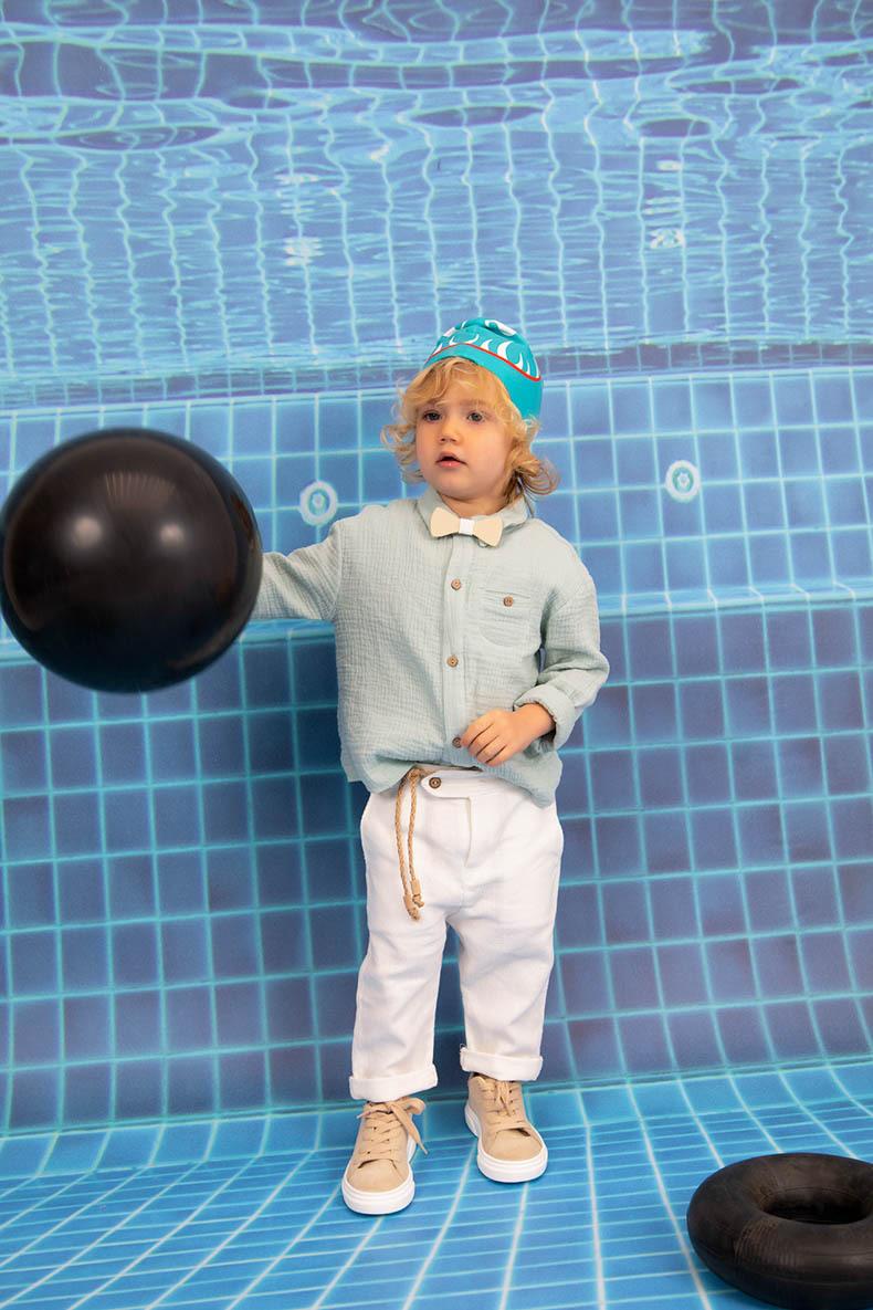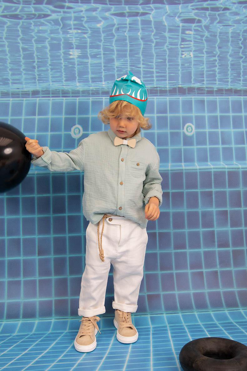 Ο Ignatios είναι ένας δυνατός συνδυασμός βάπτισης σε λευκό με μέντα αποχρώσεις. Αποτελείται από λευκό παντελόνι loose fit με ιδιαίτερη ζώνη από κορδόνι και extra soft touch πουκαμίσα με μέντα. Αξεσουάρ το ξύλινο παπιόν και το λευκό καβουράκι για το κεφάλι.