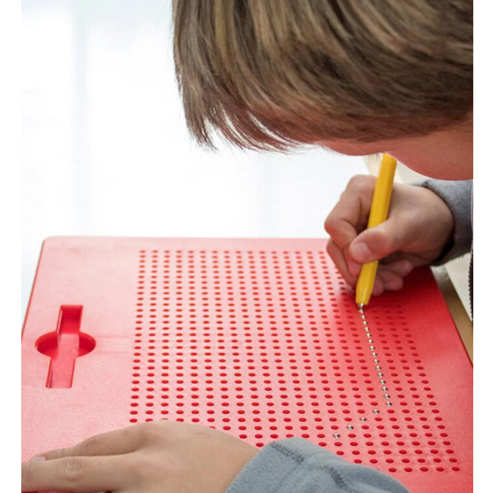 Ψάχνετε ένα εκπαιδευτικό παιχνίδι που θα συνοδεύει το παιδί στο σπίτι, στο πάρκο, στη βόλτα, στο ταξίδι ή όπου αλλού θέλει; To Imapad της εταιρείας Imanix είναι εδώ και υπόσχεται ατέλειωτες ώρες δημιουργικής απασχόλησης όπου κι αν είστε! Το ταμπλό του διαθέτει μεταλλικές μπίλιες, οι οποίες ξεπροβάλλουν όταν περνά από πάνω το μαγνητικό πενάκι! Με αυτό τον τρόπο το παιδί μπορεί να γράψει ή να “ζωγραφίσει” 2D δημιουργίες, εξερευνώντας τον μαγνητισμό και εξασκώντας παράλληλα τις λεπτές κινητικές του δεξιότητες και την προγραφή! Επίσης, εξασκεί τη συγκέντρωσή του μιας και η χρήση του από το παιδί θα το κρατήσει απασχολημένο για ώρες. Κατάλληλο από 3 ετών και άνω.