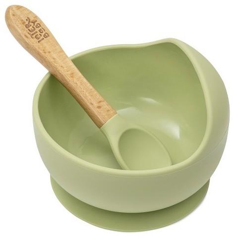 Interbaby Σετ Αντιολισθητικό Μπολ Και Κουτάλι Από Σιλικόνη Olive Green SI001-74 SI001-74