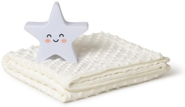 Όμορφο σετ που αποτελείται από μια κουβέρτα ανάγλυφη και ένα λαμπάκι led σε σχήμα αστεριού, μια τέλεια ιδέα δώρου  για να δώσετε σε ένα μωρό.