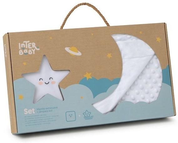 Όμορφο σετ που αποτελείται από μια κουβέρτα ανάγλυφη και ένα λαμπάκι led σε σχήμα αστεριού, μια τέλεια ιδέα δώρου για να δώσετε σε ένα μωρό.