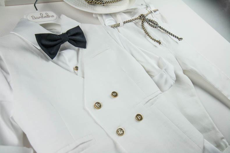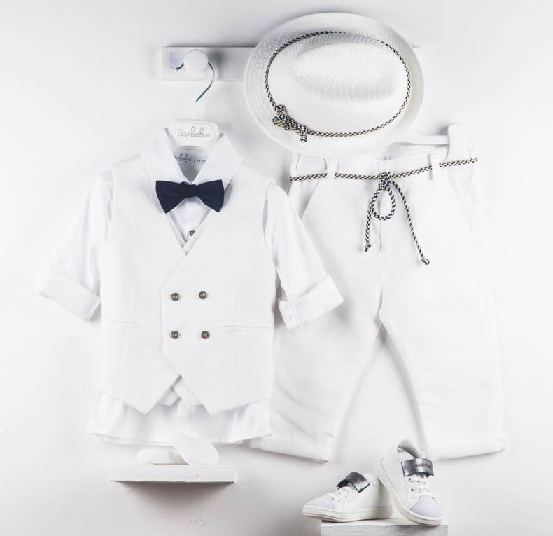 Ο King είναι ένα μοντέρνο ολόλευκο βαπτιστικό κοστούμι. Αποτελείται από λευκό λινό παντελόνι, λευκό πουκάμισο και λευκό διπλό γιλέκο το οποίο είναι διακοσμημένο με χρυσά κουμπιά. Αξεσουάρ είναι το μπλε παπιγιόν, το κορδόνι για ζώνη και το λευκό καβούρι