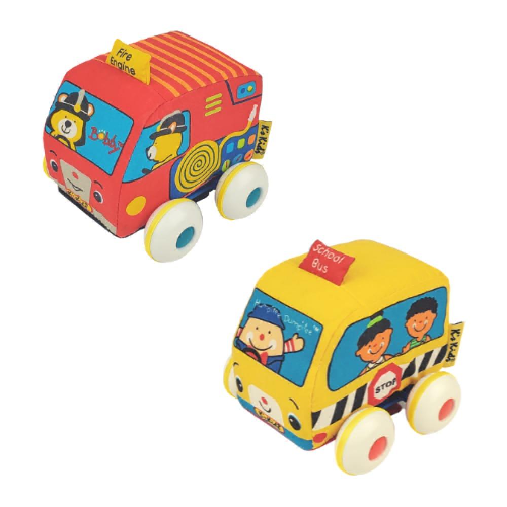 Ένα υπέροχο σετ οχημάτων με 2 χαριτωμένα “Pull Back” μαλακά αυτοκινητάκια (Λεωφορείο Σχολείου και Πυροσβεστικό Όχημα). Τα παιδιά παίζουν με τα αυτοκινητάκια χρησιμοποιώντας τη φαντασία τους και δεν κουράζονται ποτέ να τα σπρώχνουν και να τα τραβούν στο πάτωμα. Είναι ένας υπέροχος τρόπος ώστε το μωρό να εκφράσει τα συναισθήματά του και να μοιραστεί τη χαρά του με τους φίλους του ενώ παίζει. Η πλαστική βάση μπορεί να αφαιρεθεί και το μαλακό αυτοκίνητο πλένεται στο πλυντήριο.