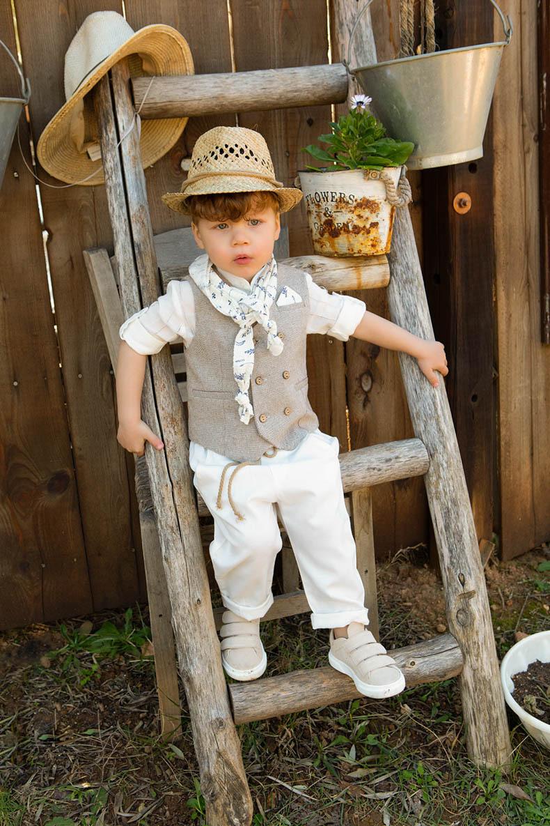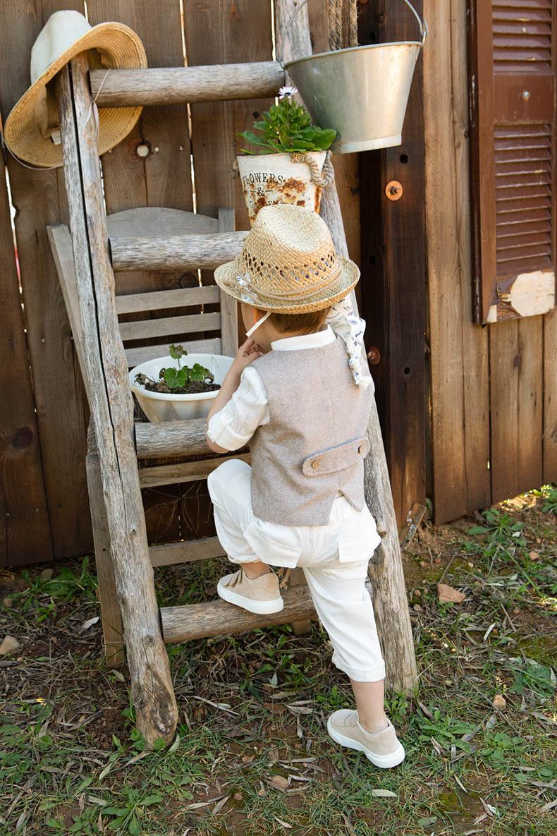 O Kylian είναι ένα boho degrade βαπτιστικό σύνολο για αγόρι που θα σας ξετρελάνει. Αποτελείται από ιβουάρ παντελόνι με φυσικό κορδόνι στην μέση, εκρού πουκαμίσα απο γάζα και μπεζ ψάθα εξαιρετικής ποιότητας για γιλέκο. Αξεσουάρ το cotton φουλάρι με λεβάντες και το natural καπέλο για το κεφάλι μυρίζουν φύση.