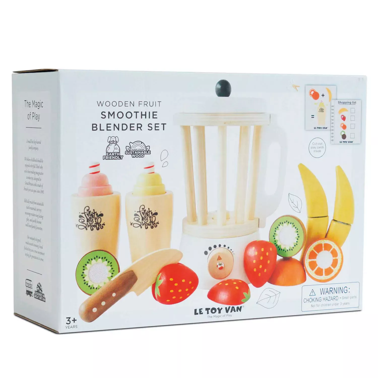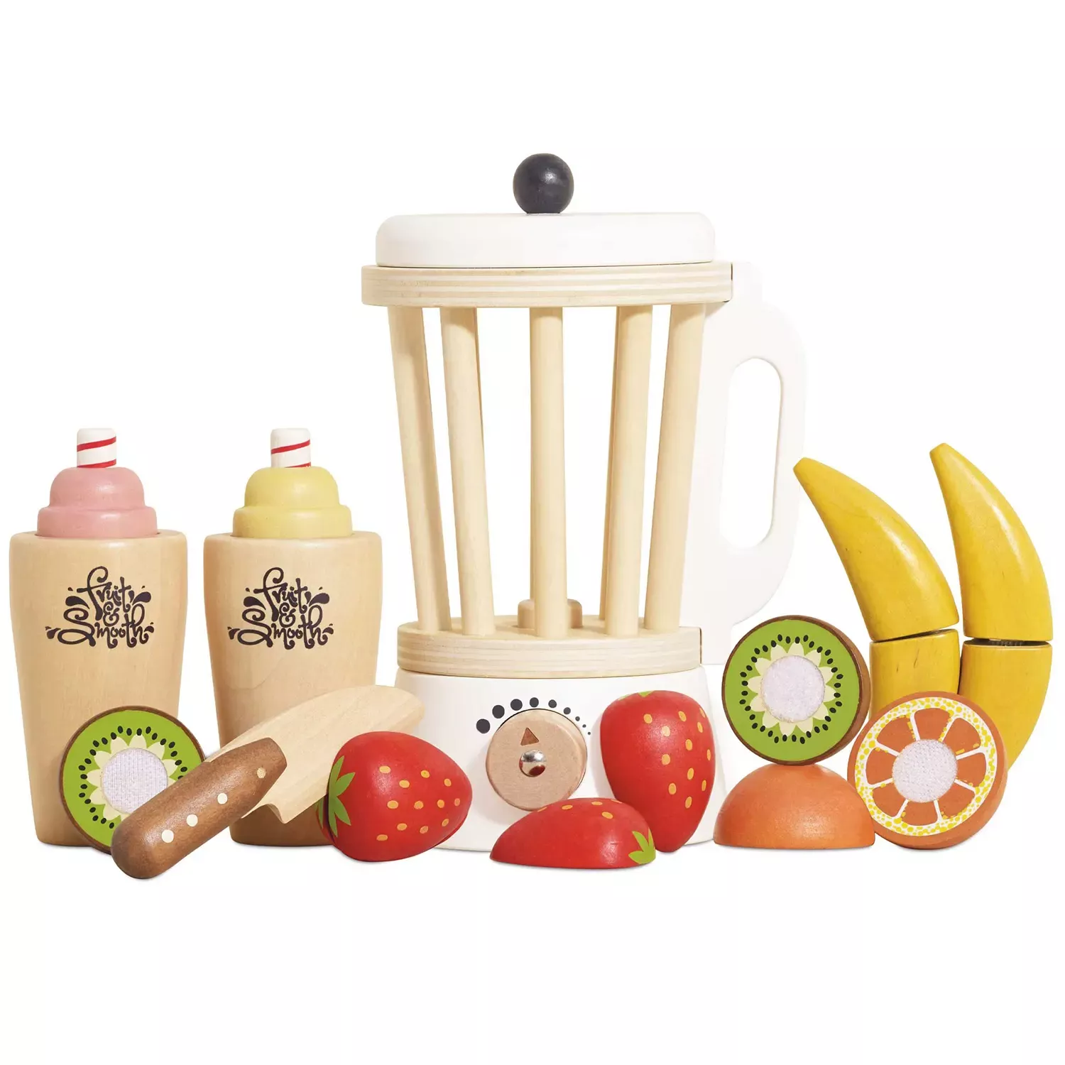 Ξύλινο μπλέντερ της εταιρείας Le toy van, με το οποίο τα παιδιά θα φτιάξουν φανταστικούς χυμούς από ξύλινα φρούτα που περιέχονται στη συσκευασία. Με σύμμαχο τη φαντασία τους θα περάσουν δημιουργικά ατελείωτες ώρες. Διαθέτει το μπλέντερ, 2 ποτήρια με καλαμάκια, ένα ξύλινο μαχαίρι και 5 φρούτα που ανοίγουν με αυτοκόλλητο καθώς τα παιδιά τα κόβουν με το ξύλινο μαχαιράκι.