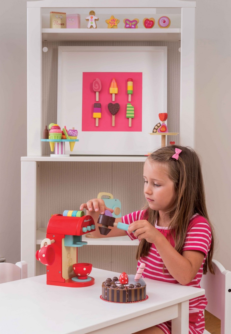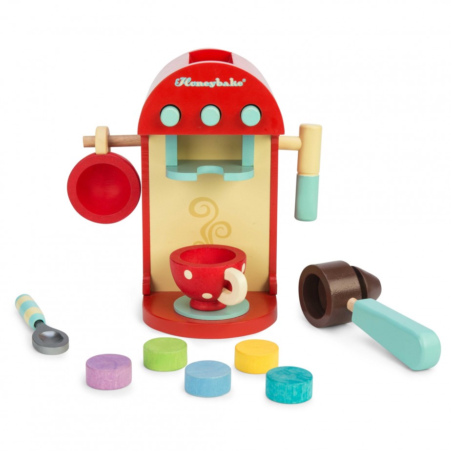 Ξύλινη καφετιέρα της εταιρίας Le Toy Van. Σε όμορφες αποχρώσεις του κόκκινου, διαθέτει δύο φλιτζάνια, ένα κουτάλι, πέντε κάψουλες για διαφορετικές γεύσεις ή για διαφορετικά φανταστικά ροφήματα και ένα εξάρτημα – φίλτρο. Ένα παιχνίδι ρόλων που θα αναπτύξει τη δημιουργικότητα των παιδιών. Από ξύλο καουτσουκόδεντρου με οικολογικά – μη τοξικά χρώματα, ασφαλή για τα παιδιά.
