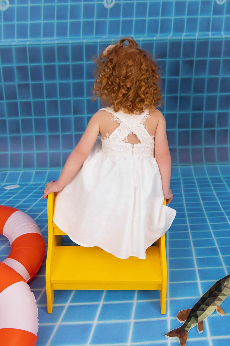 Η Lily είναι ενα εκρού λινό φόρεμα με εξαιρετική δαντέλα. Η πανέμορφη χιαστή πλάτη θα σας εκπλήξει ευχάριστα. Εσωτερικά είναι επενδυμένο από 100% βαμβάκι. Η κορδέλα είναι με λινό φιόγκο και δαντέλα.