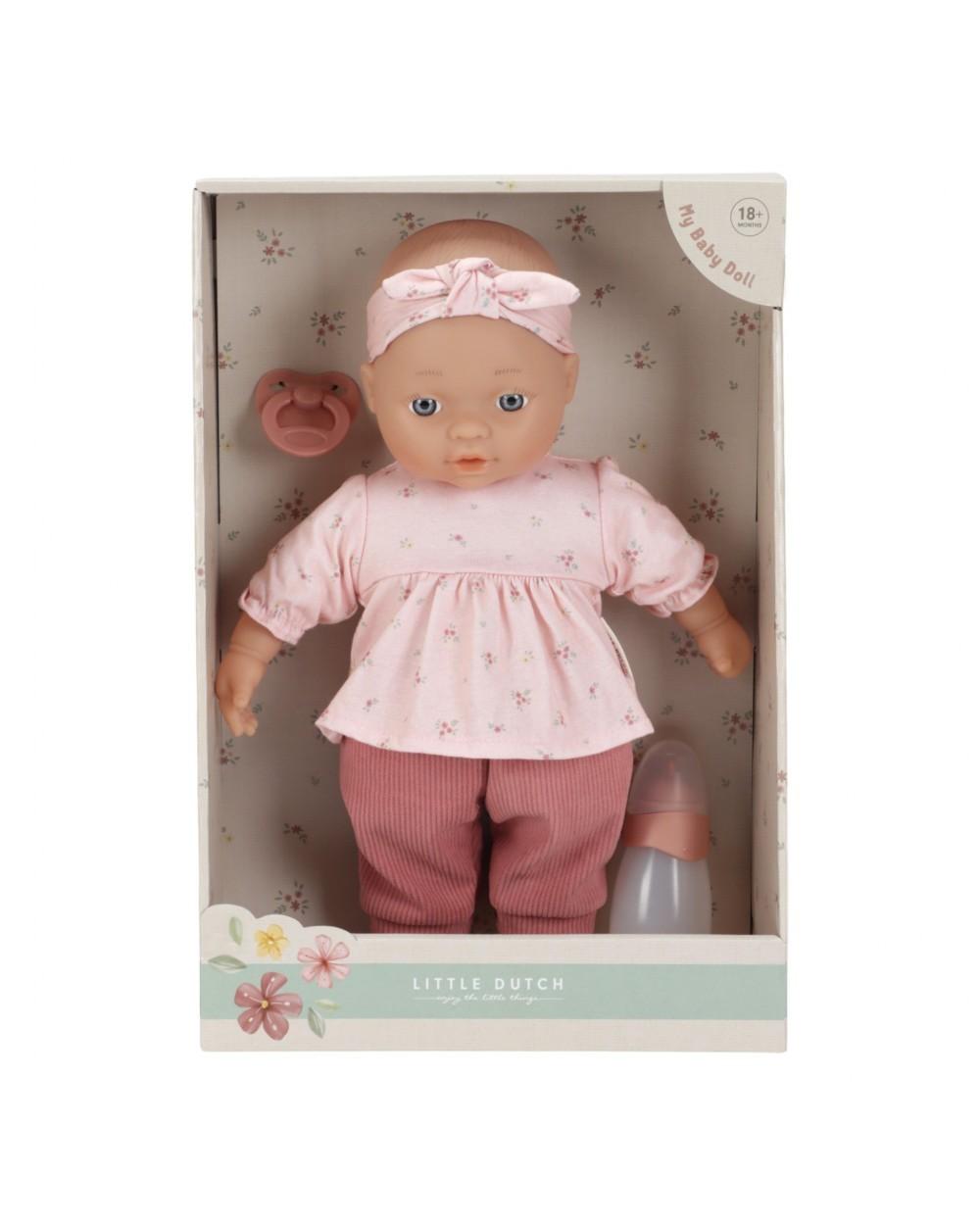Η Lily φοράει κορδέλα μαλλιών, μακρυμάνικο φόρεμα με το σχέδιο Rosy Meadows, συνδυασμένο με ροζ παντελόνι. Η αλλαγή των ρούχων της προάγει τις λεπτές κινητικές δεξιότητες, ενώ η πιπίλα και το μπιμπερό προσθέτουν ένα στοιχείο διαδραστικού παιχνιδιού.