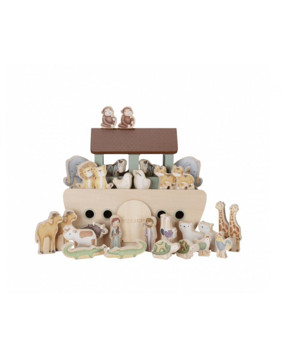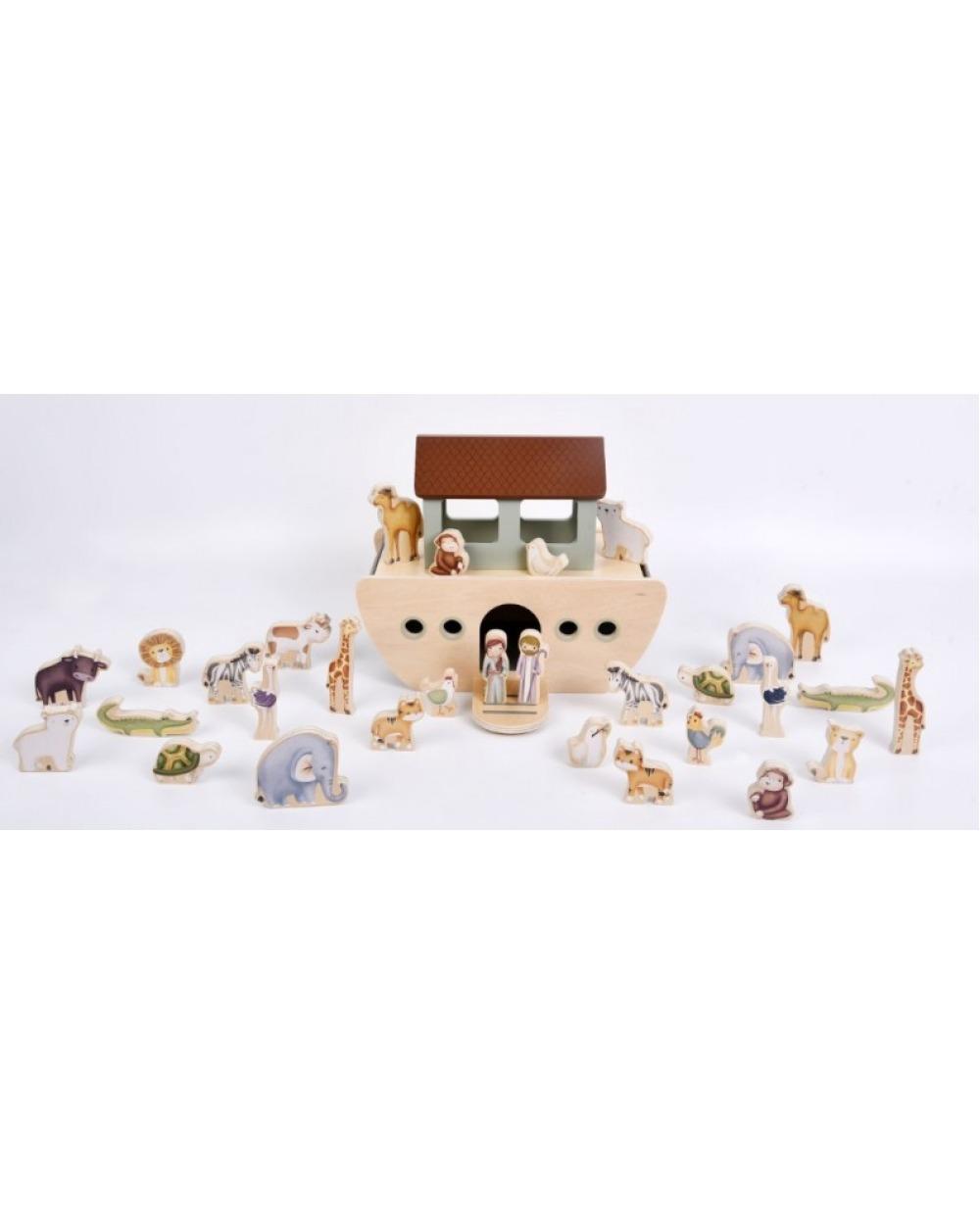 Αυτό το σετ 30 τεμαχίων περιλαμβάνει την Κιβωτό με μια ανοιγόμενη πόρτα και ένα κατάστρωμα που μπορούν να ανυψωθεί για να μπουν όλα τα ζώα.