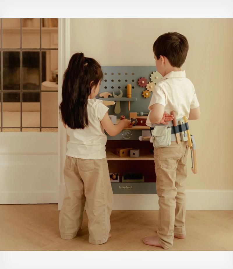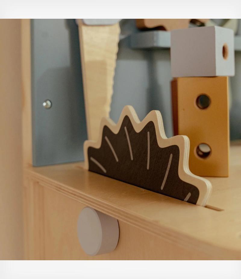 Τα νήπια λατρεύουν να αντιγράφουν τους γονείς τους και αυτός ο πάγκος εργασίας τους επιτρέπει να δημιουργούν, να φτιάχνουν και να επισκευάσουν αντικείμενα, όπως και οι ενήλικες! Μια συναρπαστική δραστηριότητα για τα παιδιά που μαθαίνουν να βιδώνουν, να πριονίζουν και να συνδέουν κομμάτια μεταξύ τους, εξασκώντας τις κινητικές τους δεξιότητες καθώς και τη φαντασία τους.