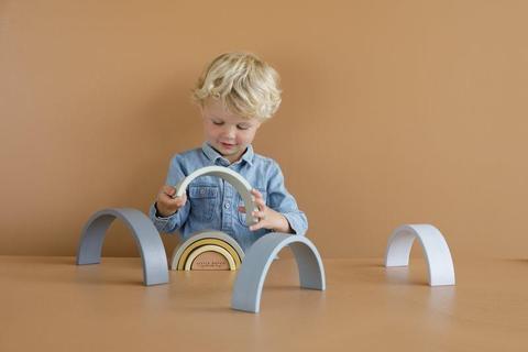 Ένας νέος και πρωτότυπος πύργος στοίβαξης από τη Little Dutch, που έχει τη μορφή ενός πανέμορφου ουράνιου τόξου. Το τριασδιάστατο ουράνιο τόξο μπορεί όμορφα να διακοσμήσει το παιδικό δωμάτιο, αλλά και να χαρίσει ατελείωτες ώρες παιχνιδιού και διασκέδασης στο παιδί σας. Αποτελείται από 8 καμάρες που ταιριάζουν απόλυτα μεταξύ τους, με τις οποίες το παιδί μπορεί να παίξει και να μάθει να δημιουργεί διαφορετικές κατασκευές, χρησιμοποιώντας τη φαντασία του.