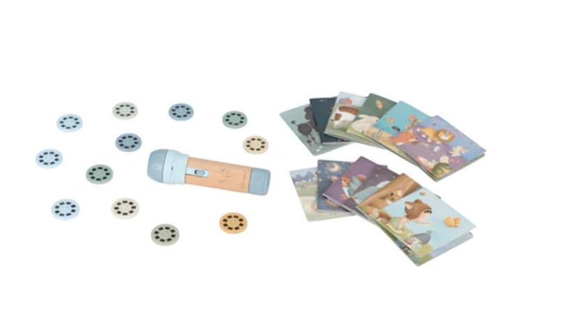Περιλαμβάνει 12 δίσκους με μοναδικές ιστορίες, οι οποίες προβάλλονται στον τοίχο μέσα από υπέροχες εικονογραφήσεις. Κάθε ιστορία συνοδεύεται από το αντίστοιχο βιβλίο, επιτρέποντας στα παιδιά να ακολουθήσουν την πλοκή με εικόνες και λόγια.
