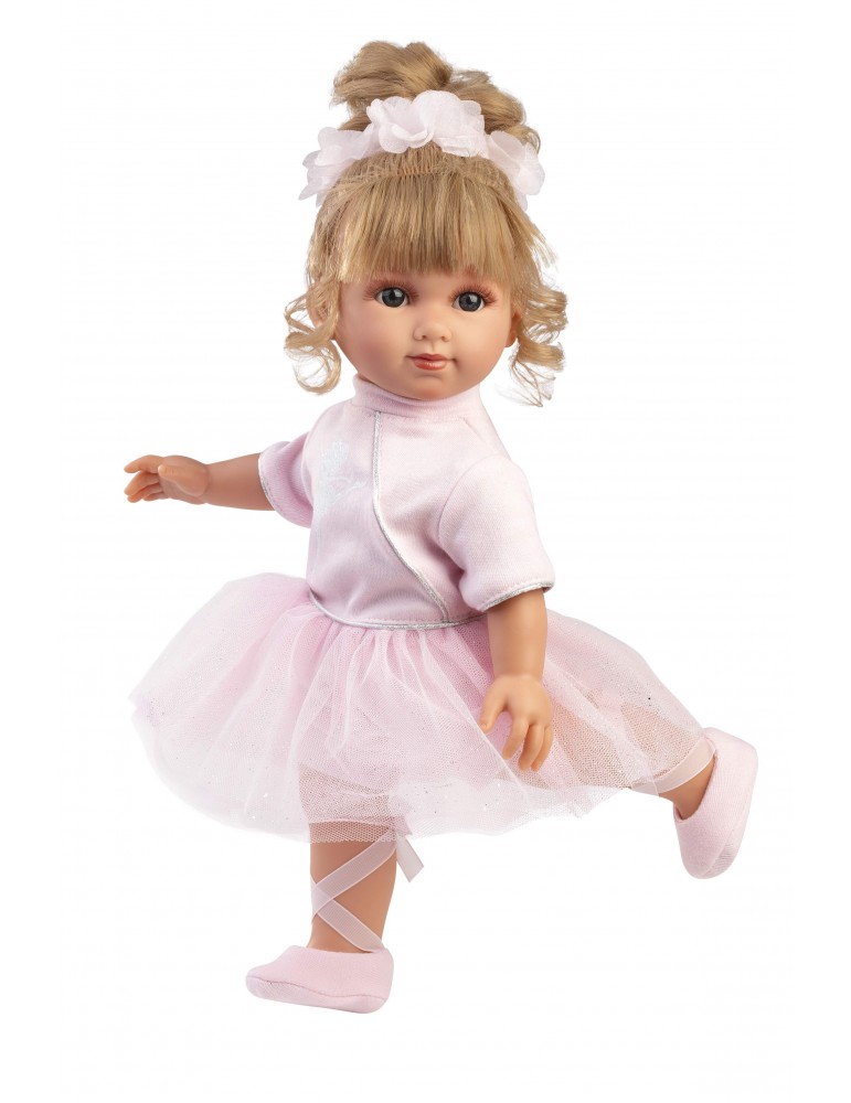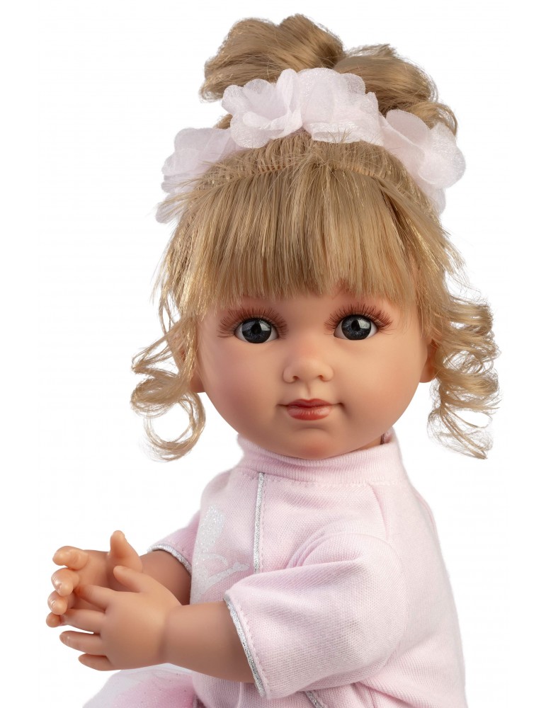 Koύκλα 35cm ξανθια Elena με ροζ φορεμα με τουλινες λεπτομεριες και τουλινη κορδελα λουλουδια στα μαλλιά .Ιδανικο για δωρο γενεθλιων . Κατασκευασμένο στην Ισπανία. Με εξαιρετικές λεπτομέριες σε σε πρόσωπο και άκρα.