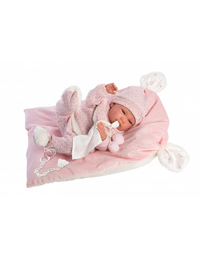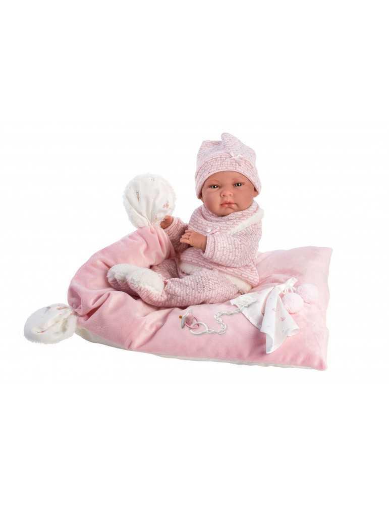Νεογέννητο 40cm ροζ φορμάκι και ροζ σκούφο σε ροζ κουβέρτα με φιόγγους, με σώμα βινυλίου και περιστρεφόμενα άκρα. Κατασκευασμένο στην Ισπανία με εξαιρετικές λεπτομέριες σε πρόσωπο και άκρα