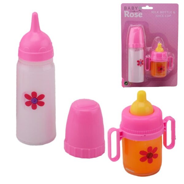 Σετ μπιμπερό με «γάλα» και κύπελλο εκμάθησης με «χυμό».