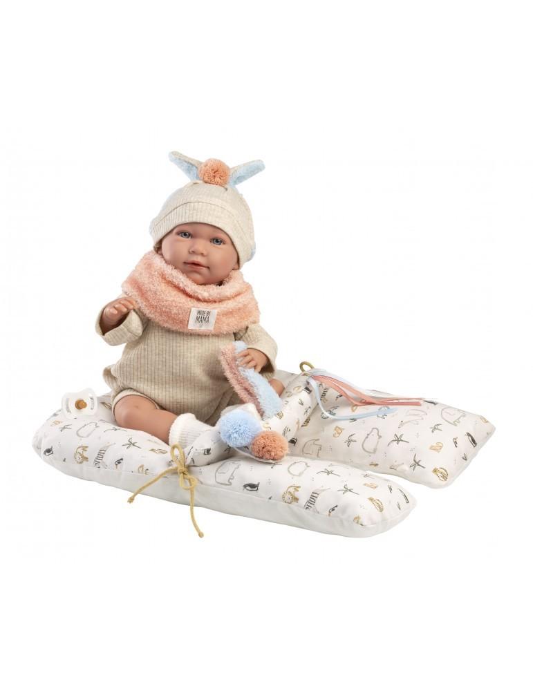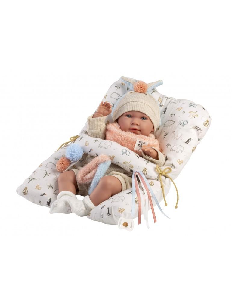 Εκπληκτικό νεογέννητο 40cm με μαλακό σώμα που κλαιει και έχει περιστρεφόμενα άκρα.Φοραει μπεζ φορμα και ασορτι σκουφι και συνοδευεται από μαξιλαρι παιχνιδιου με ζωακια . Κατασκευασμένο στην Ισπανία με εξαιρετικές λεπτομέριες σε πρόσωπο και άκρα.