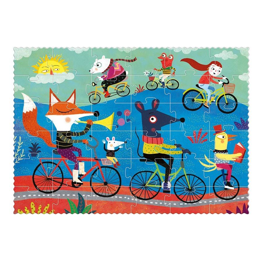 Ελάτε για μια όμορφη βόλτα με ποδήλατο με την αλεπού και τους φίλους της! Έχει φωτεινά χρώματα και υπέροχη συσκευασία. Είναι ιδανικό για δώρο. Περιλαμβάνει 36 μεγάλα κομμάτια για μικρά χεράκια. Είναι φτιαγμένο από ανακυκλωμένο χαρτί και χαρτόνι και πληρεί όλες τις προδιαγραφές ασφαλείας.