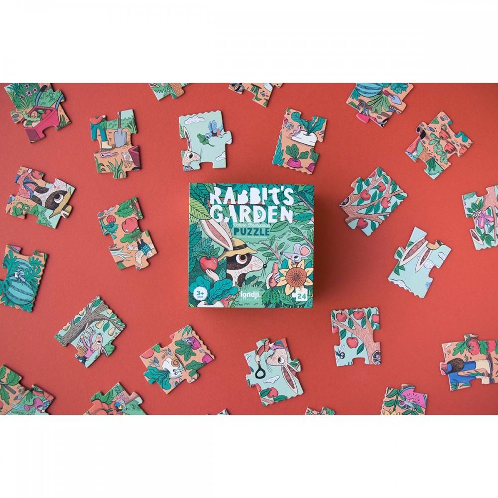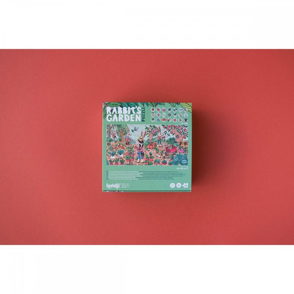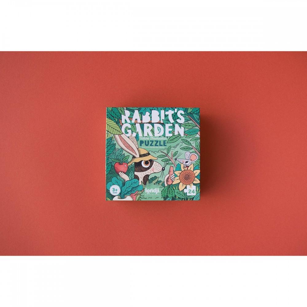 Ο Κήπος του Λαγού είναι ένα πανέμορφο, διαδραστικό παζλ με εικονογραφήσεις της σχεδιάστριας Mariana Ruiz Johnson και θέμα τα λαχανικά και τις εργασίες κηπουρικής. Αφού κατασκευάσετε το αρχικό παζλ, προσπαθήστε να βρείτε στην εικόνα όλα τα φρούτα, λαχανικά και αντικείμενα που φαίνονται στις 24 κάρτες που περιλαμβάνονται στη συσκευασία.