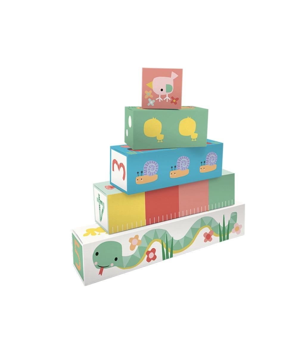 5 κουτιά παιχνιδιών, διαφορετικών μεγεθών, με χαριτωμένες και διασκεδαστικές εικονογραφήσεις ζώων, από το μακρύτερο στο πιο κοντό, εικόνες για να ζωγραφήσετε αλλά και έγχρωμους αριθμούς! Στο κουτί υπάρχει επίσης ένα παζλ μέτρησης αναστήματος για να παίξετε και αφού το συναρμολογήσετε να το κρεμάσετε στον τοίχο του παιδικού δωματίου. Ένα πραγματικά πρωτότυπο σετ για την προσέγγιση της έννοιας του μήκους καθώς και την λήψη πρώτων βημάτων στην προμέτρηση και τον προυπολογισμό. Περιεχόμενα: 5 κουτιά διαφορετικού μεγέθους από 8 έως 40 εκ, 1 παζλ μέτρησης αναστήματος παιδιού με μέγιστο ύψος 1.20 μέτρα, φυλλάδιο με οδηγίες.