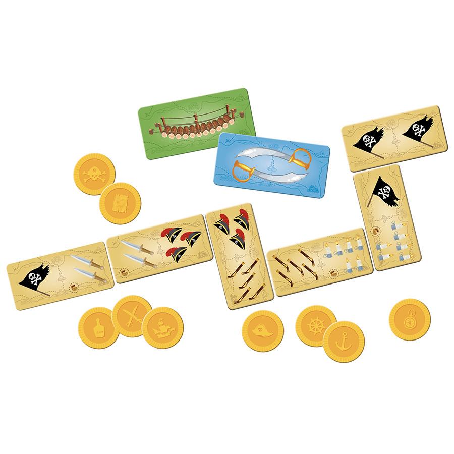 Το κλασσικό παιχνίδι ντόμινο, ανανεωμένο, με μοντέρνο σχεδιασμό και πλούσια εικονογράφηση με θέμα τους πειρατές και άλλα φανταστικά αντικείμενα που χρησιμοποιούν στις περιπέτειές τους! Το παιχνίδι ενισχύει τη συγκέντρωση των παιδιών και τα βοηθά να αναπτύξουν τη λεπτή κινητικότητα τους και να εξασκήσουν τον οπτικοκινητικό τους συντονισμό. Διαστάσεις : 22.5 x 22.5 x 4 εκ