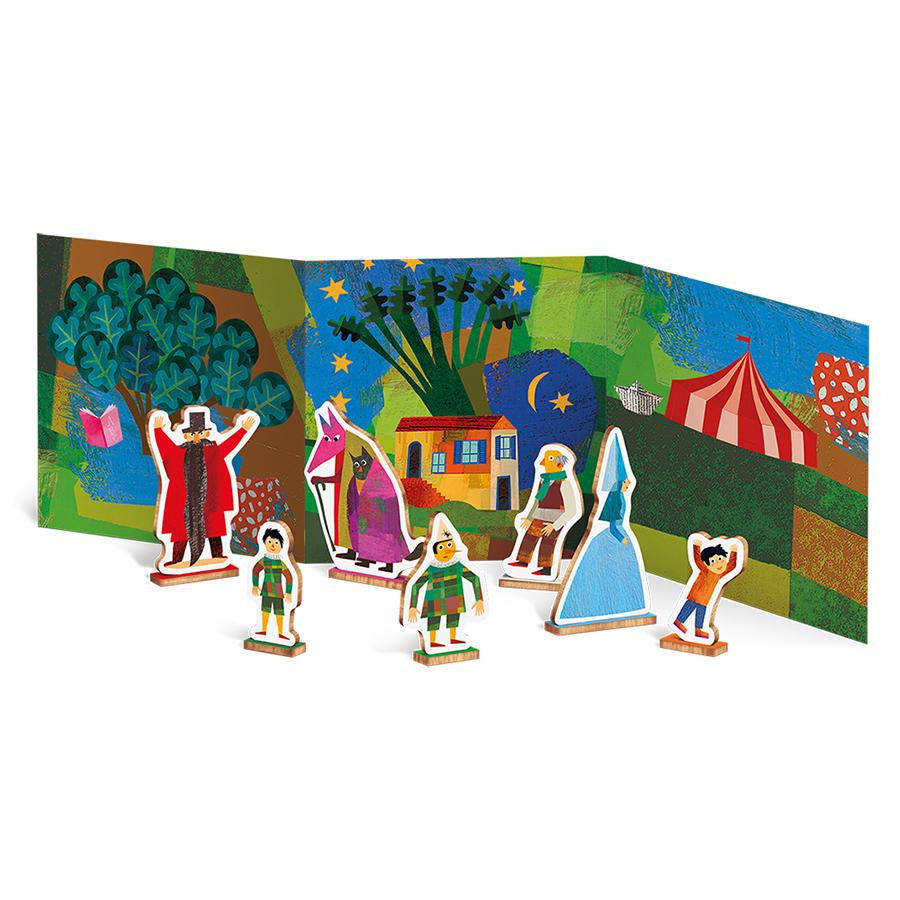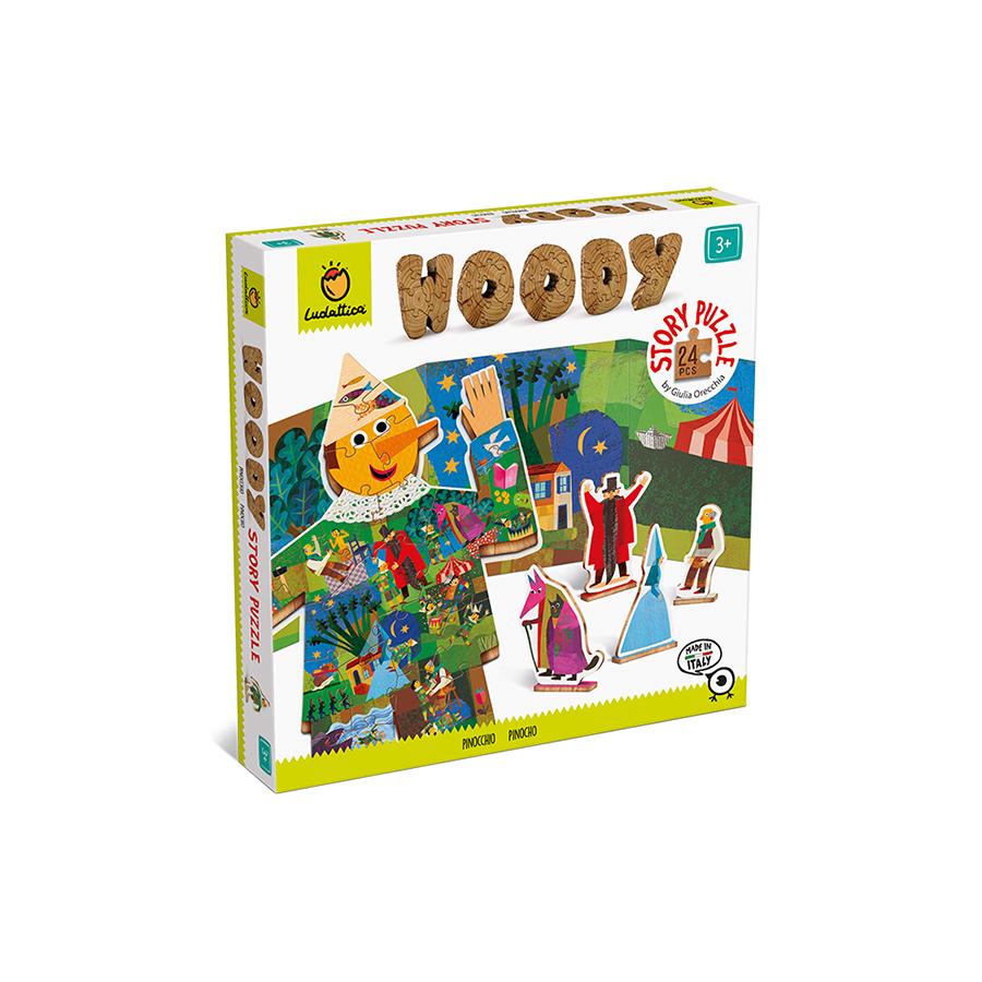 Τα «Woody Story Puzzles», η νέα προσθήκη της Ludattica στα αγαπημένα μας «Woody Puzzles», υιοθετούν την ίδια πρωτότυπη λογική και ενσωματώνουν σε αυτήν και το παιχνίδι μέσω εξιστόρησης ενός παραμυθιού. Συμπεριλαμβανόμενα στα 24 κομμάτια που συνθέτουν την εικόνα του παζλ, κρύβονται και οι 7 βασικοί πρωταγωνιστές της ιστορίας του Πινόκιο. Αφού φτιάξετε το παζλ, αφαιρέστε τους, τοποθετήστε τους στις ειδικές βάσεις τους, στήστε το σκηνικό που περιλαμβάνεται στη συσκευασία και αρχίστε την αφήγηση! Διαστάσεις συσκευασίας: 24.5 x 24.5 x 4 εκ. Ηλικία: Από 3 ετών.