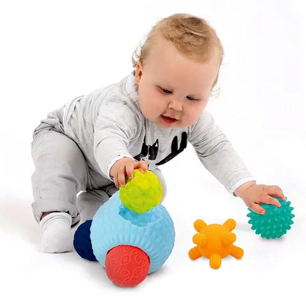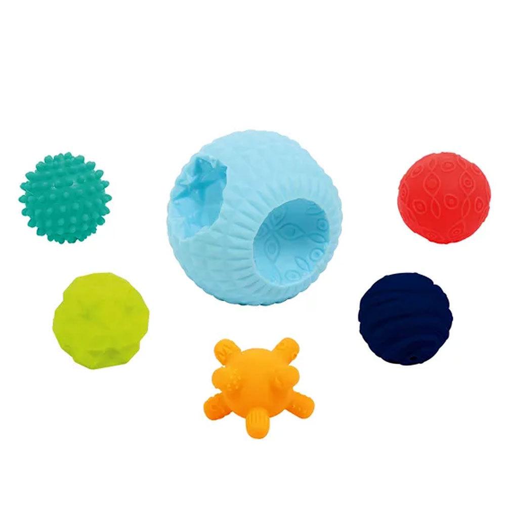 Ανακαλύψτε τον κόσμο των αισθήσεων με τις μπαλίτσες από την εταιρεία Ludi. Το ιδιαίτερο αυτό τρισδιάστατο παζλ με τα υπέροχα φωτεινά του χρώματα, θα τραβήξει την προσοχή και θα ενθουσιάσει το μωρό σας! Το σετ περιλαμβάνει πέντε μπάλες με διαφορετικά χρώματα και υφές, οι οποίες μπορούν να ταιριάξουν στη μεγαλύτερη μπάλα που τις κρατά όλες μαζί. Οι αισθητηριακές μπάλες βοηθούν το παιδί να αναγνωρίζει τα σχήματα και τα χρώματα, συμβάλλει στην εξάσκηση της μνήμης και της λογικής ενώ ταυτόχρονα αποτελεί εξαιρετική άσκηση λεπτής κινητικότητας. Οι μπάλες μπορούν επίσης να χρησιμοποιηθούν και μόνες τους για παιχνίδι αλλά και ως μασητικό για ανακούφιση των ούλων κατά την περίοδο της οδοντοφυΐας. Κατασκευασμένο από υψηλής ποιότητας, άοσμο πλαστικό (100% PVC). Κατάλληλο για παιδιά από 6 μηνών. Διαστάσεις προϊόντος: μικρές μπάλες (περίμετρος): 6,5 εκ. μεγάλη μπάλα (περίμετρος): 12 εκ.