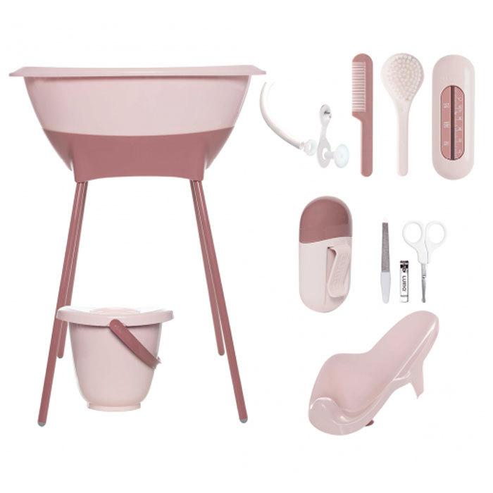 Περιέχει οκτώ είδη που είναι απαραίτητα στην καθημερινή φροντίδα του μωρού σας: μπάνιο μωρού, βάση μπάνιου, κάδος για πάνες, βοηθητικό μπάνιου, σετ μανικιούρ, χτένα, βούρτσα, θερμόμετρο μπάνιου και σωλήνας αποχέτευσης νερού..