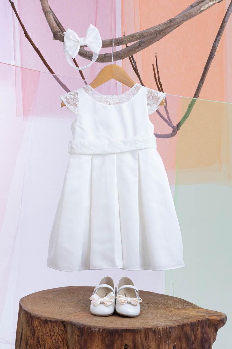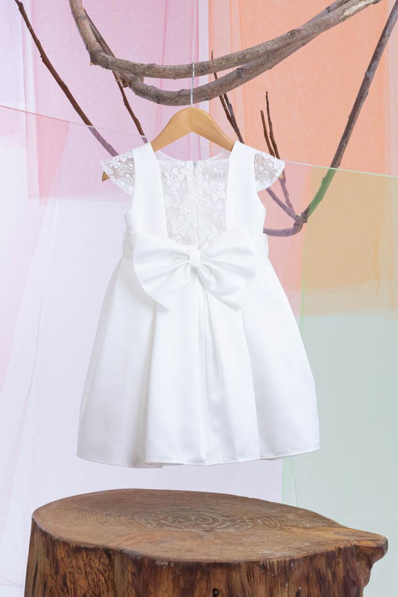 Η Malamo είναι ένα εκρου σατεν εμβαζε φορεμα με petite διαφανα δαντελενια μανικια.Η διαφανη δαντελενια πλατη του θα σας ξετρελανει σε συνδυασμο με τον τεραστιο σατεν φιογκο. Συνοδευεται με κορδελα για το κεφαλι.