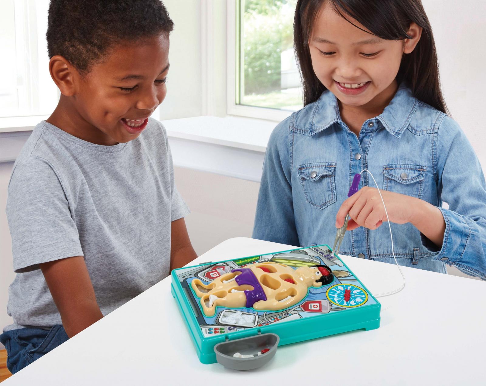 Πάρτε μια βαθιά ανάσα, σταθεροποιήστε τα χέρια σας και ετοιμαστείτε για το χειρουργείο! Οι παίκτες περιστρέφουν εναλλάξ το βέλος για να αποφασίσουν ποια μέρη του σώματος πρέπει να αφαιρεθούν και στη συνέχεια πρέπει να αφαιρέσουν προσεκτικά το συγκεκριμένο μέρος από τον ασθενή χρησιμοποιώντας το τσιμπιδάκι, πριν το ρίξουν στο δίσκο συλλογής. Προσέξτε όμως – αν αγγίξετε το λάθος μέρος, ο ασθενής σας θα κουνηθεί και θα αποβληθείτε! Ποιος θα είναι αυτός που θα σώσει τον ασθενή;! Για 2 – 4 παίκτες. Συνιστάται για ηλικίες 6 ετών και άνω. Διαστάσεις προίόντος: 26 (Π) x 6,3 (Υ) x 18 (Μ) cm.